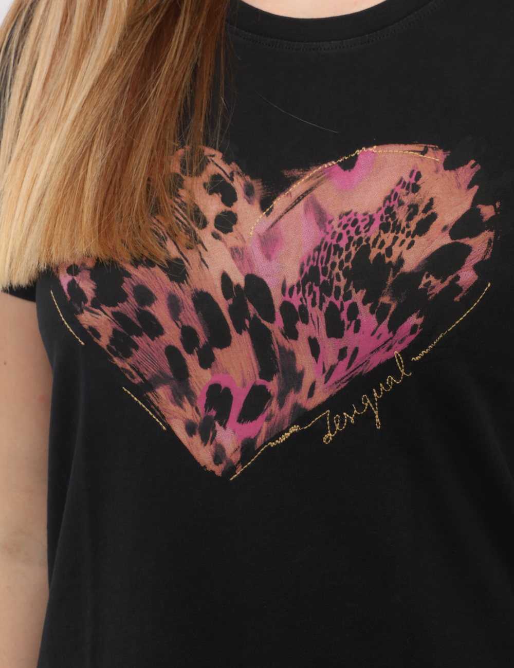La T-shirt DESIGUAL Nera è il capo perfetto per chi desidera un look essenziale ma con un tocco di personalità. Questa T-shirt da donna adatta alla stagione primavera estate si distingue per il suo design pulito arricchito da una stampa a cuore a contrasto, capace di catturare l’attenzione con discrezione.