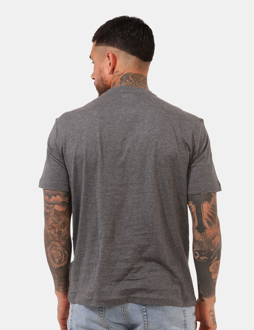 T-shirt classica su base grigio melange con stampa centrale logo brand bianca. La vestibilità è morbida e regolare. La t-shirt è adatta per occasioni casual e facilmente combinabile. Praticità e stile in un solo capo.