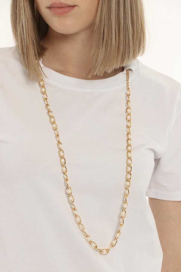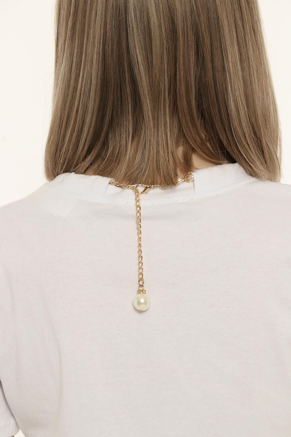T-shirt in total bianco con collana dorata inserita nel girocollo classico. La vestibilità è morbida e regolare. La t-shirt è adatta per occasioni casual. Aggiungila al tuo guardaroba se vuoi un outfit che spicchi.