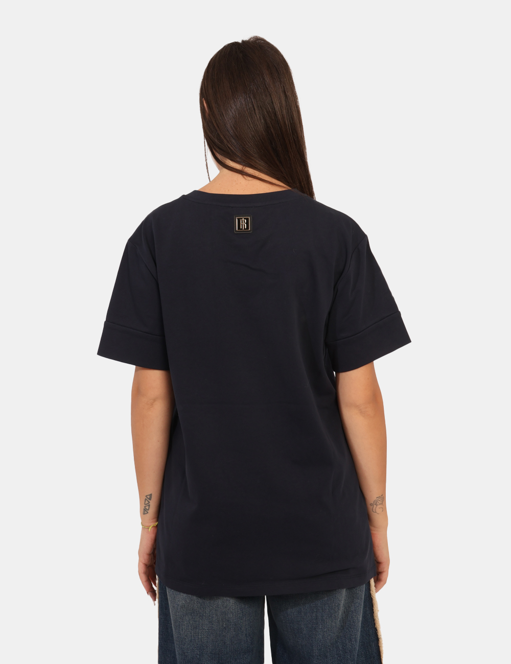 La modella è alta 165 cm e veste la taglia S. La vestibilità del capo è regolare.