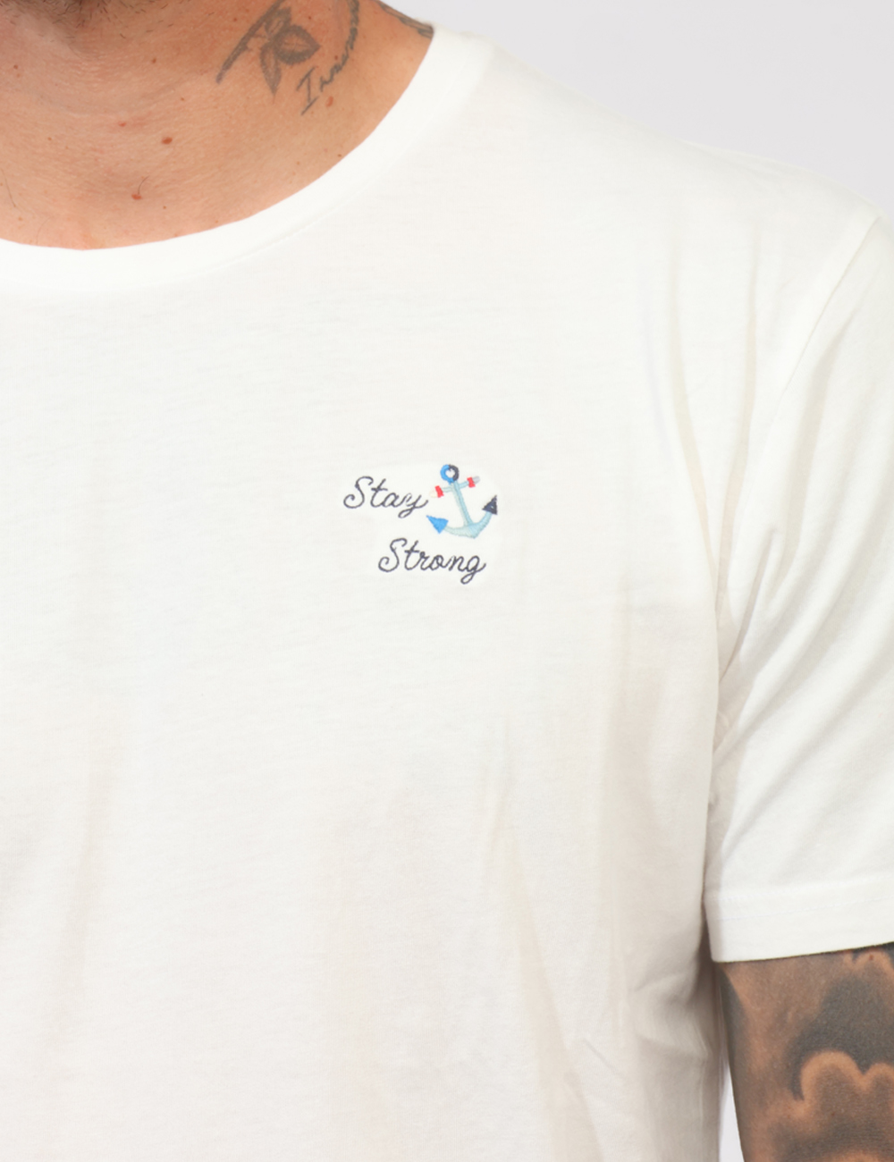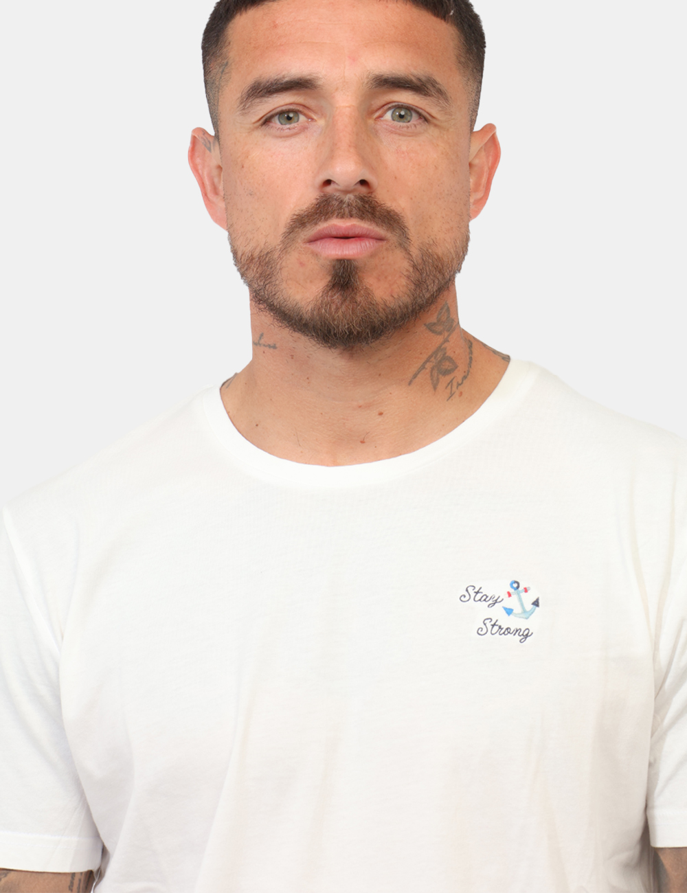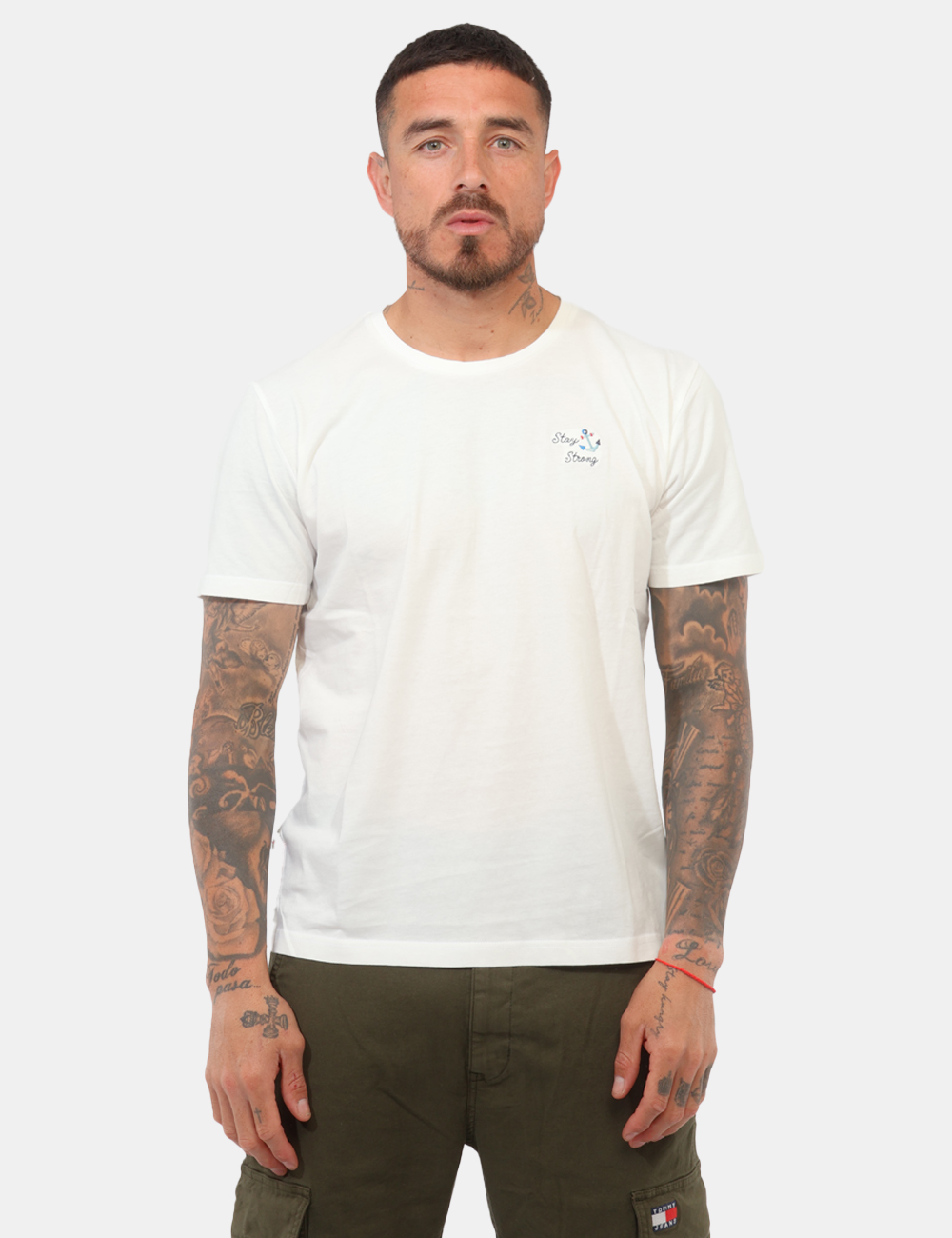 Questa T-shirt da uomo adatta in tutte le stagioni si distingue per il suo design minimal impreziosito da un piccolo ricamo, un dettaglio discreto che aggiunge carattere senza rinunciare alla semplicità. Il colore bianco, luminoso e sempre attuale, si presta a molteplici abbinamenti. La vestibilità regolare assicura un fit comodo e naturale: il modello è alto 187 cm e indossa una taglia L.