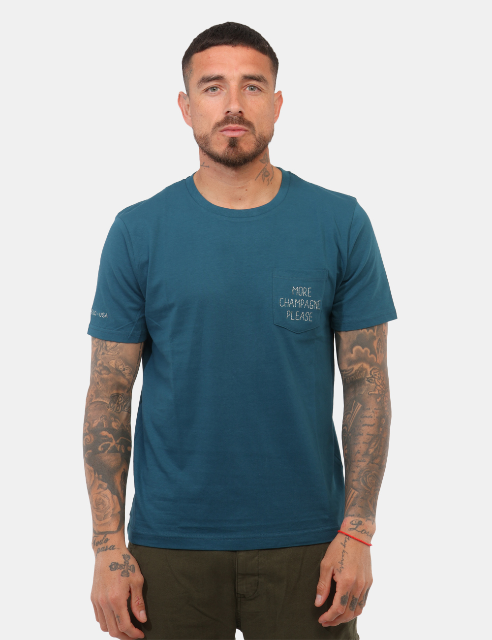 Questa T-shirt da uomo adatta in tutte le stagioni si distingue per i suoi dettagli curati: il taschino sul petto aggiunge funzionalità e carattere, mentre il ricamo a contrasto dona un tocco distintivo e riconoscibile senza risultare eccessivo. Il colore verde, moderno e versatile, permette di creare look sempre diversi. La vestibilità regolare assicura un fit comodo e naturale: il modello è alto 187 cm e indossa una taglia L.