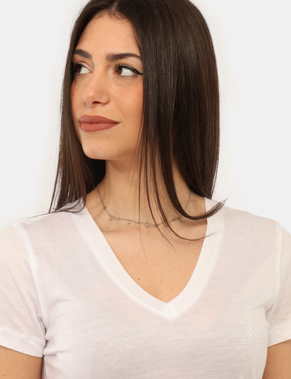 La T-shirt GUESS Bianca è il capo essenziale che non può mancare nel tuo guardaroba di stagione. Fresca, luminosa e versatile, si distingue per uno stile minimal impreziosito da dettagli raffinati. Realizzata in 100% lyocell, offre una sensazione di estrema morbidezza sulla pelle e una piacevole leggerezza, rendendola una T-shirt da donna adatta alla stagione primavera estate.