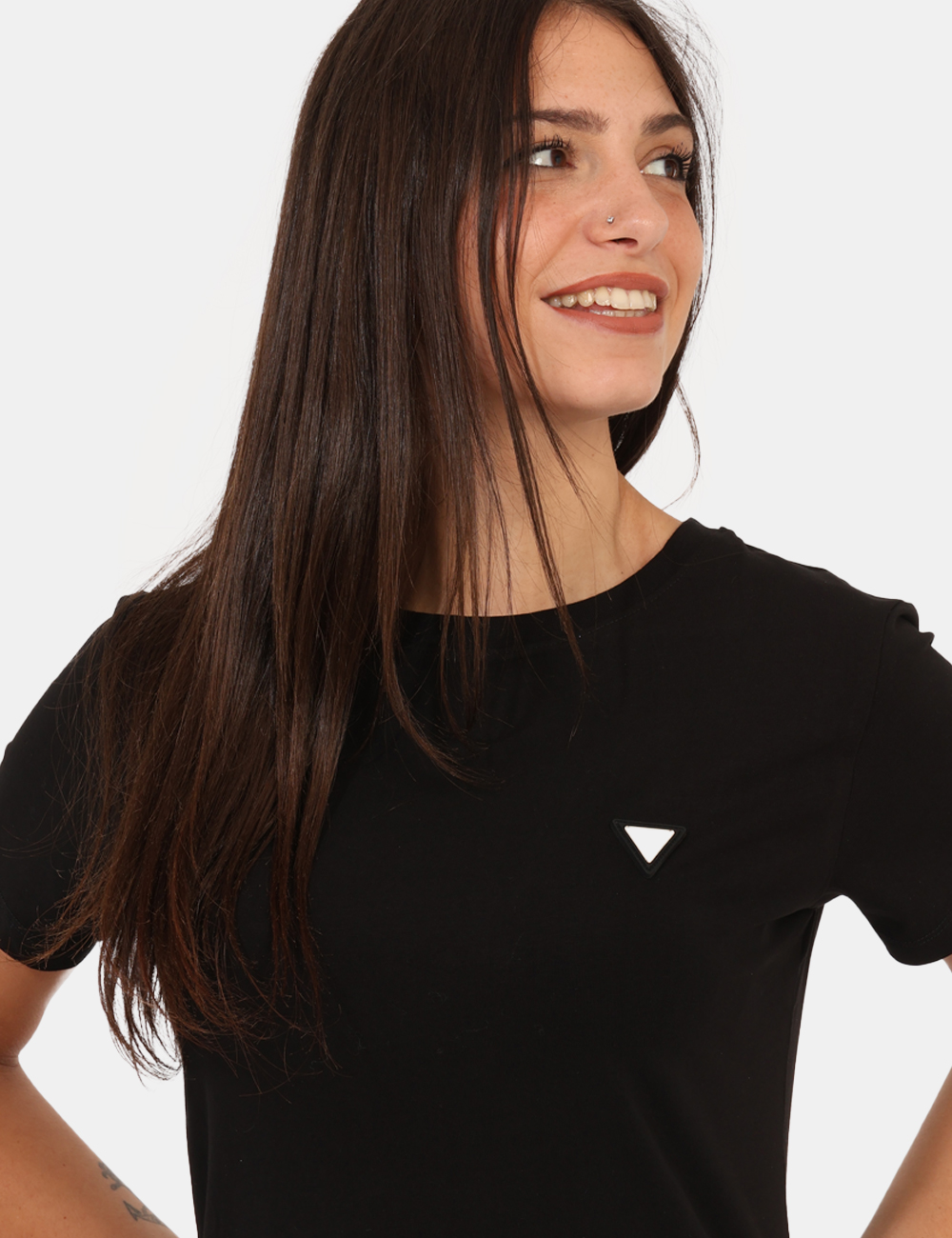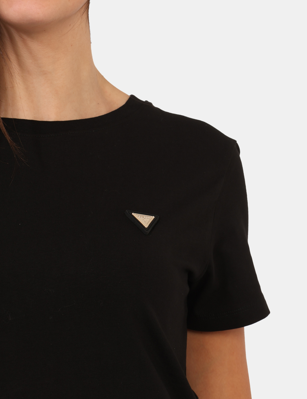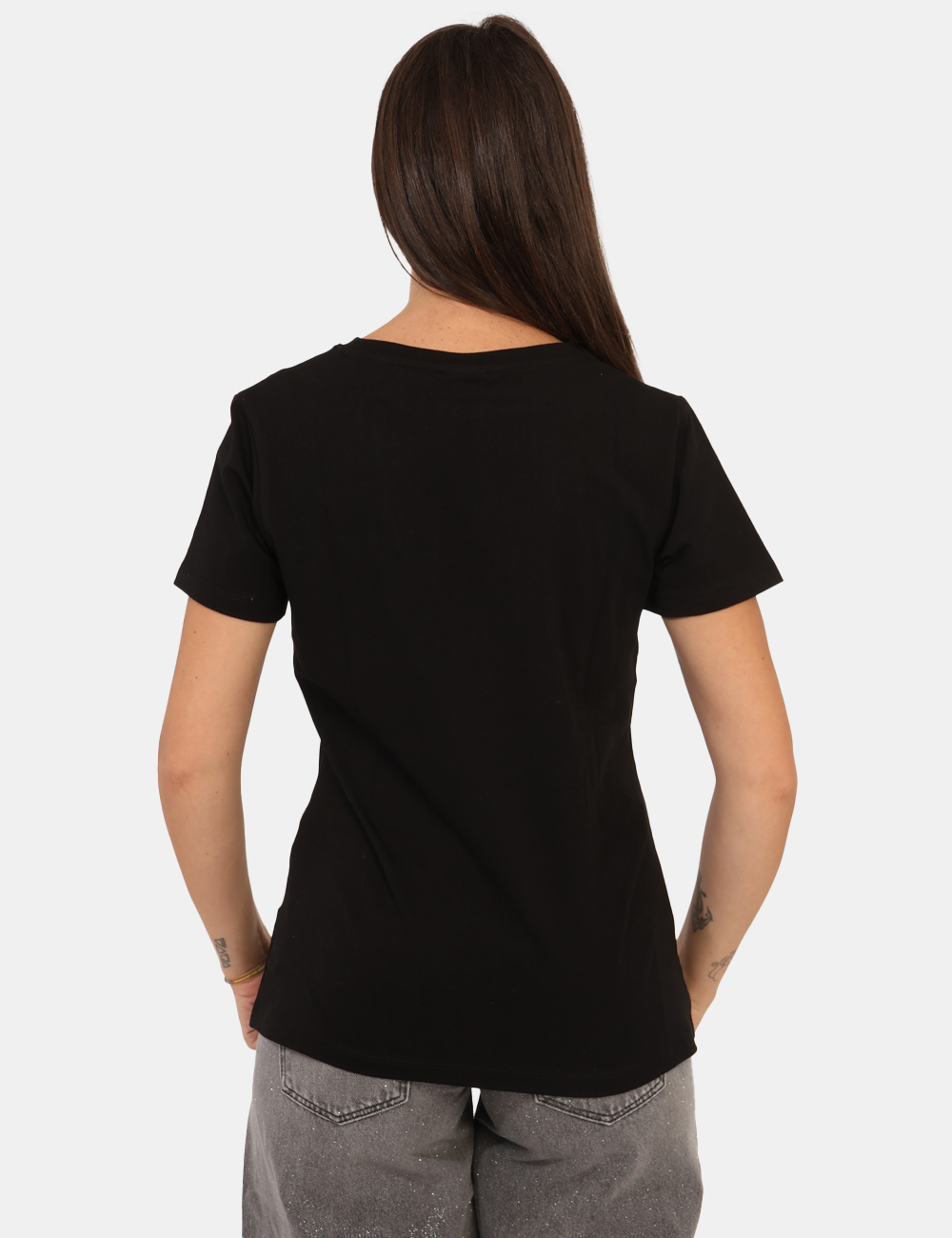 T-shirt classica in total nero con logo brand in metallo dorato. La vestibilità è morbida e regolare. La t-shirt è adatta per occasioni casual e facilmente combinabile. Troppo comoda per poterne fare a meno.