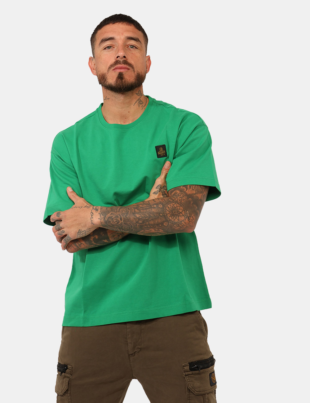 T-shirt classica in total nero con logo brand stampata sul girocollo. La vestibilità è morbida e regolare. La t-shirt è adatta per occasioni casual e facilmente combinabile. Praticità e stile in un solo capo. L’articolo appartiene al campionario esclusivo di stagione: pezzo unico