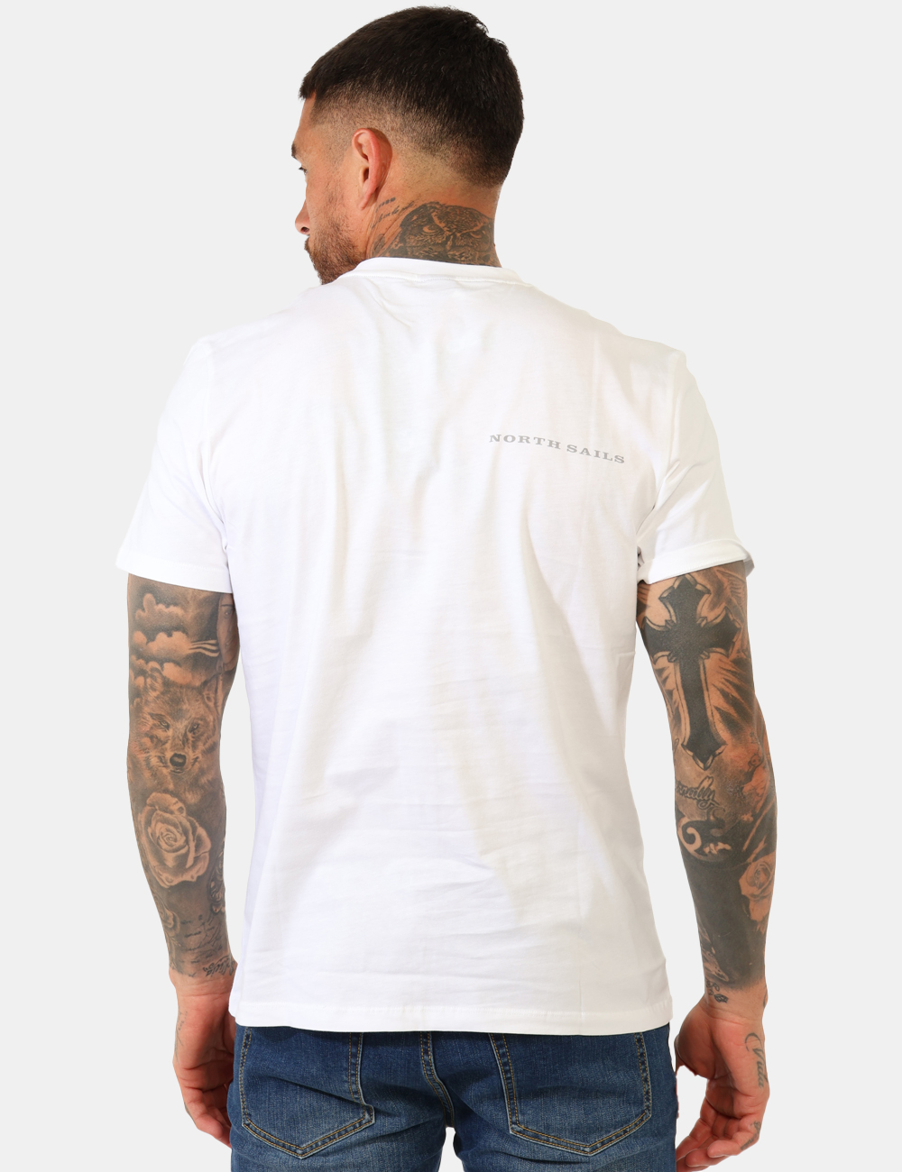 T-shirt classica su base bianca con stampa logo brand in grigio. La vestibilità è morbida e regolare. La t-shirt è adatta per occasioni casual e facilmente combinabile. Praticità e stile in un solo capo.