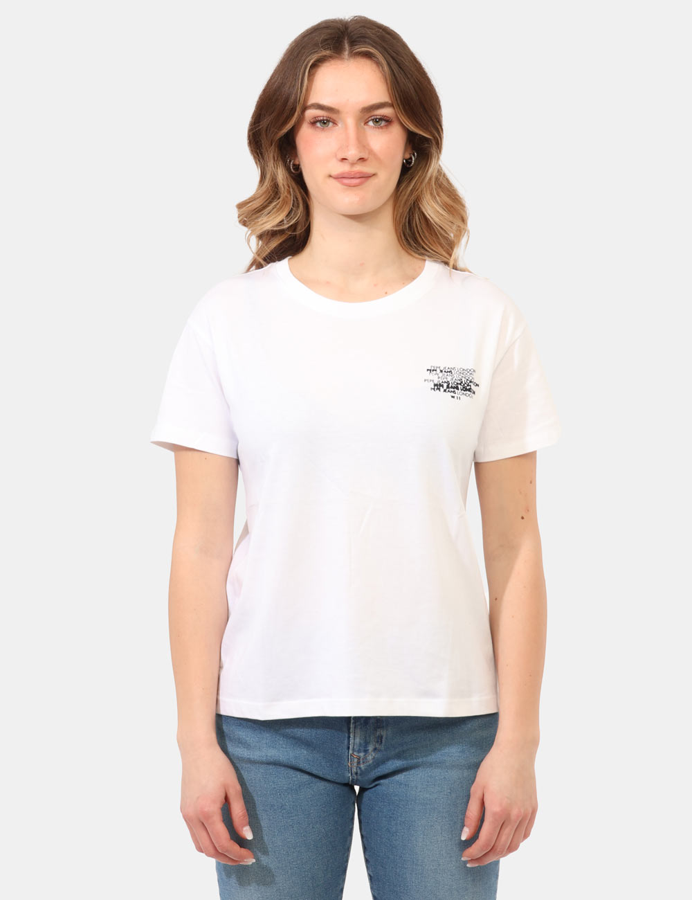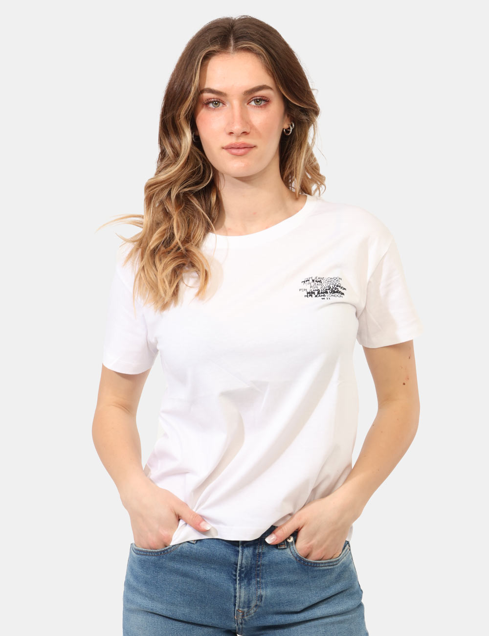 Per un look casual puoi abbinarla a jeans e sneakers, mentre per uno stile più femminile e rilassato puoi scegliere un pantalone leggero e accessori minimal. La T-shirt è ideale per chi cerca un capo versatile, facile da abbinare e sempre attuale.