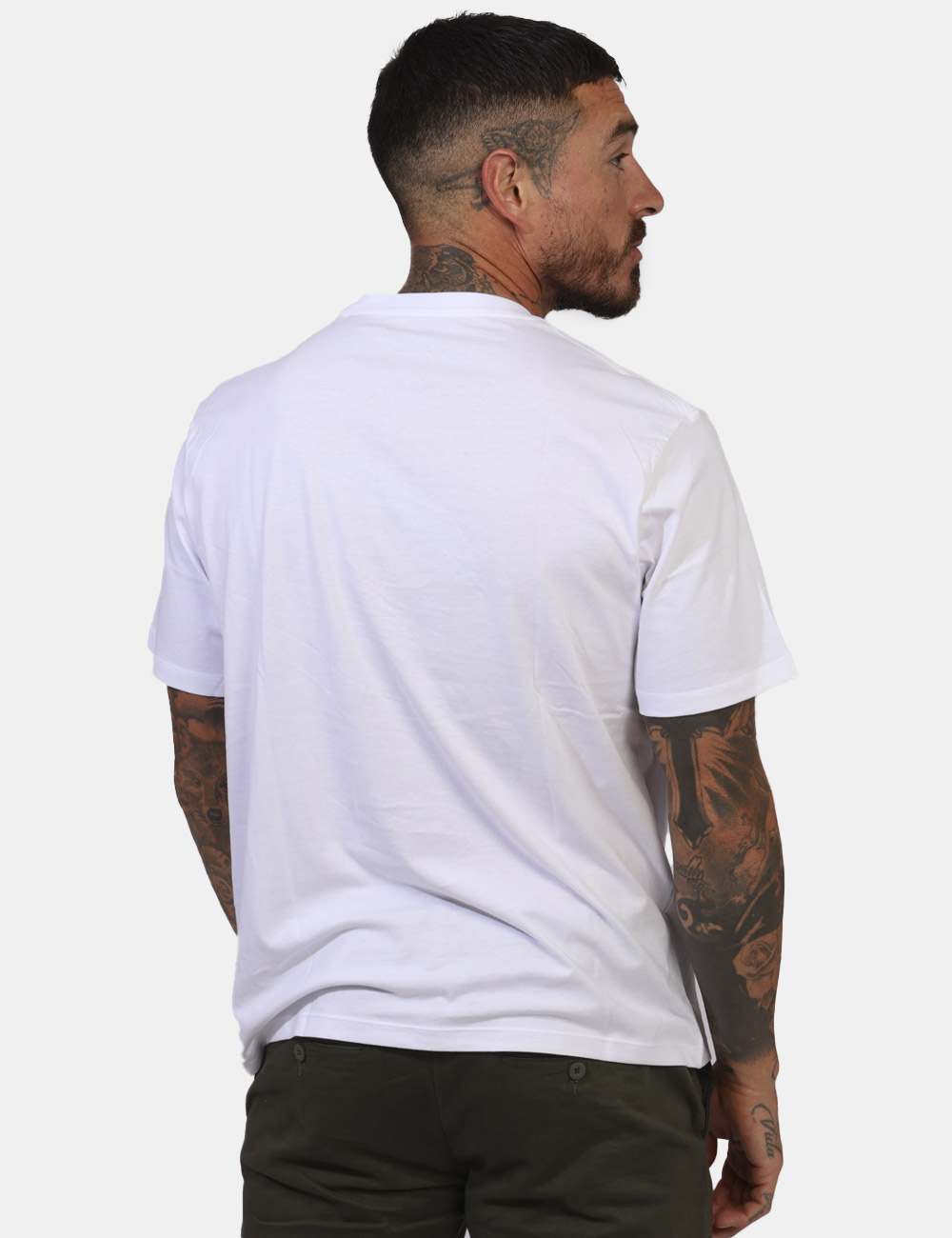T-shirt classica su base bianca con stampa logo brand in rosso e nero. La vestibilità è morbida e regolare. La t-shirt è adatta per occasioni casual. Praticità e stile in un solo capo.