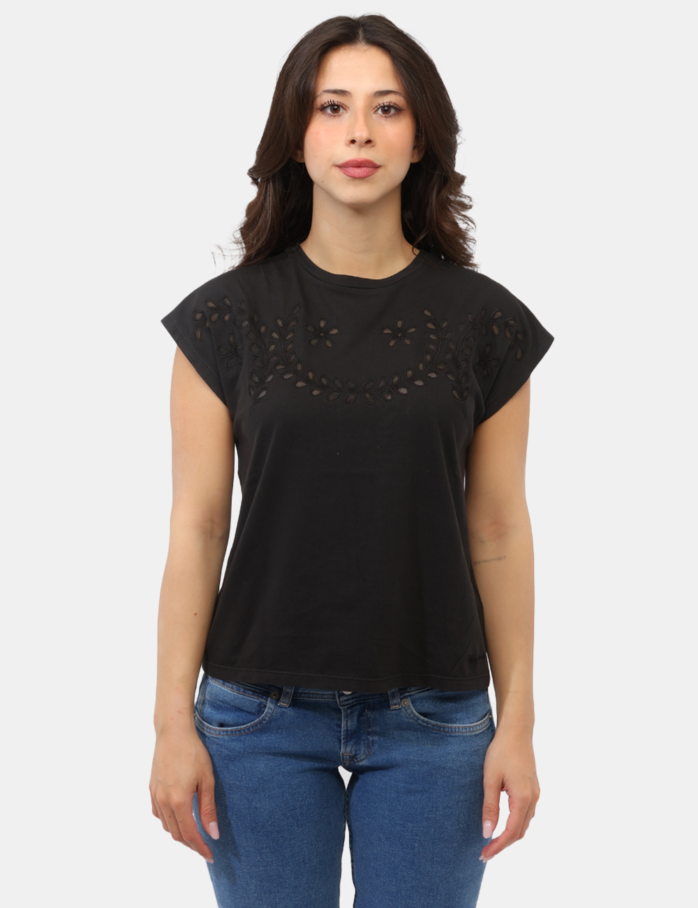 La T-shirt PEPE JEANS Nera è un capo essenziale che unisce semplicità e ricercatezza, perfetto per accompagnarti con stile in ogni momento della giornata. Versatile e sempre attuale, questa T-shirt da donna adatta in tutte le stagioni è pensata per chi ama un look curato ma naturale.Realizzata in 100% cotone, offre una sensazione morbida e confortevole sulla pelle, ideale per un utilizzo quotidiano. La vestibilità regolare, come indossata dalla modella alta 165 cm che veste la taglia S, garantisce una linea fluida e adatta a diverse fisicità.Il dettaglio distintivo è il ricamo traforato, che dona un tocco femminile e raffinato, rendendo questa T-shirt con ricamo traforato diversa dal classico basic. Il colore nero, intramontabile e facile da abbinare, la rende un capo indispensabile nel guardaroba.Perfetta da indossare nel tempo libero, durante una giornata in città o anche in contesti più informali, si adatta con facilità a ogni occasione.Puoi abbinarla a jeans e sneakers per un look casual e dinamico, oppure a pantaloni eleganti e sandali per uno stile più sofisticato e contemporaneo.Pratica, versatile e sempre attuale, è la scelta ideale per completare i tuoi outfit con semplicità e carattere.Acquista in totale sicurezza su SecondaStrada.com: tutti i prodotti sono originali e selezionati con cura. Codice articolo: PL5000137 OB