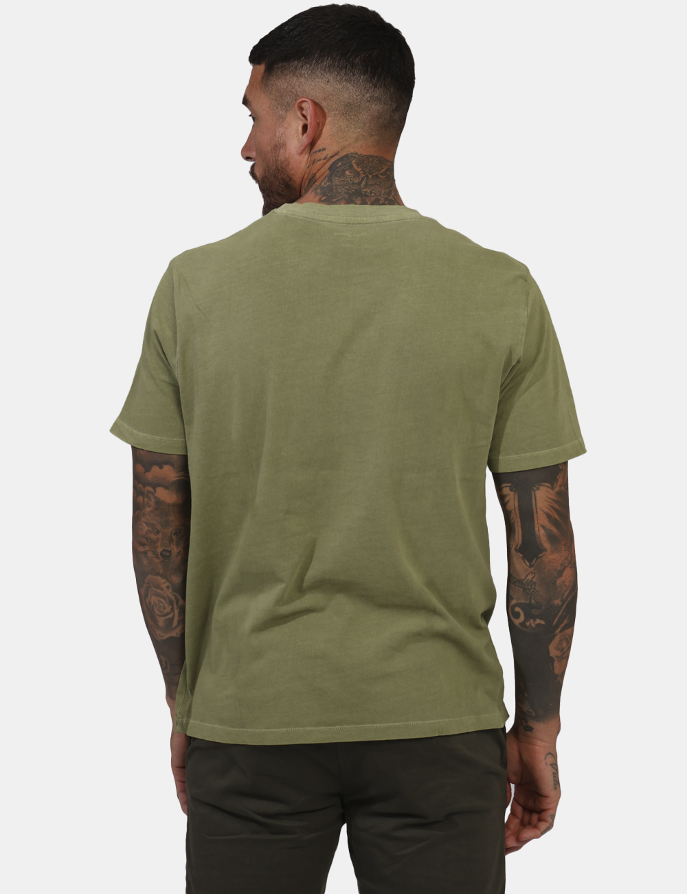 T-shirt classica su base verde militare con logo brand ricamato in tono su tono. La vestibilità è morbida e regolare. La t-shirt è adatta per occasioni casual. Praticità e stile in un solo capo.