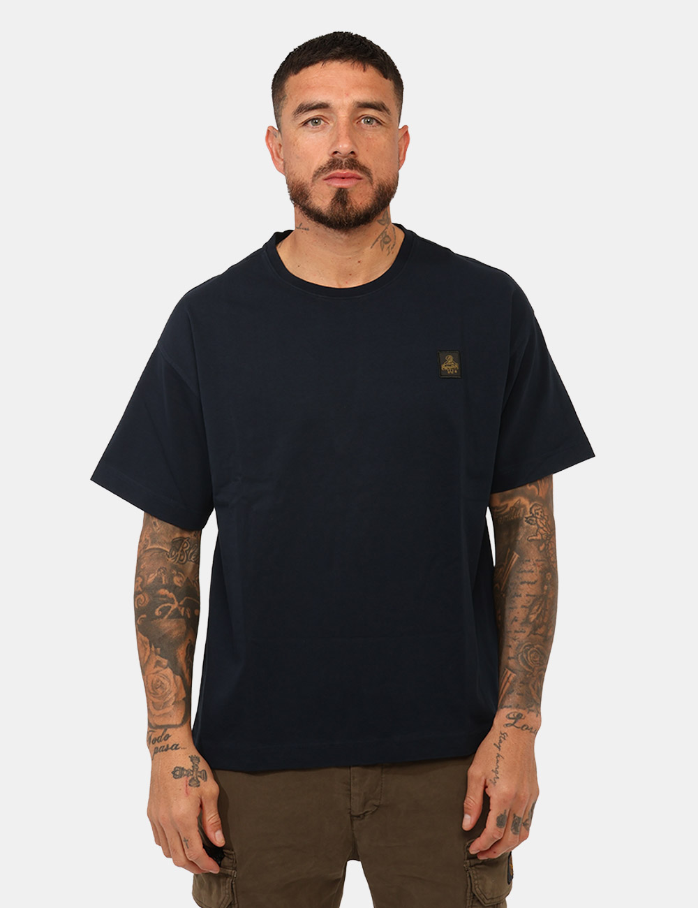 T-shirt in total blu navy con patch logo brand. La vestibilità è morbida e regolare. La t-shirt è adatta per occasioni casual e facilmente combinabile. Dona un tocco di colore ai tuoi outfit.