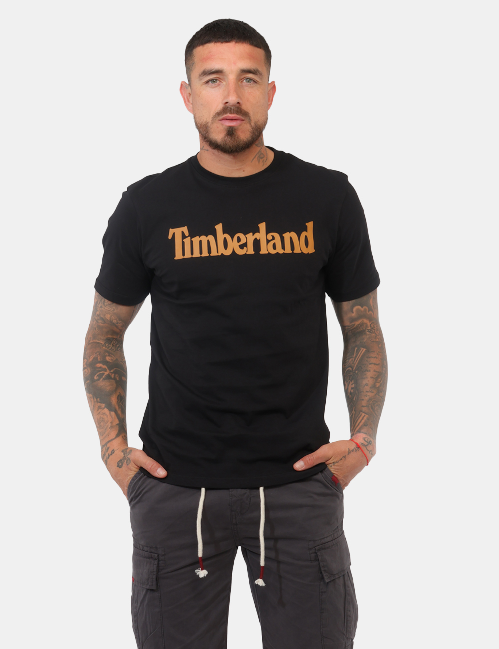 Il design è arricchito da una stampa Timberland a contrasto, elemento distintivo che dona personalità al capo mantenendo un’estetica pulita e versatile. La vestibilità regolare garantisce comfort e libertà di movimento: il modello è alto 187 cm e indossa una taglia L, per un fit equilibrato e adatto a diverse fisicità.