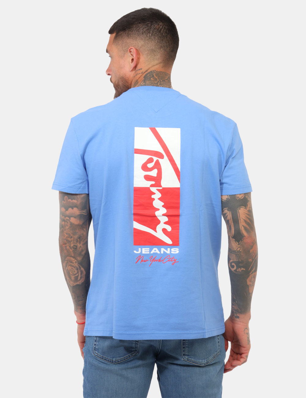 Questa T-shirt con stampa Tommy jeans sul retro unisce semplicità e carattere: il design pulito sul davanti è valorizzato dalla stampa sul retro, che aggiunge un dettaglio distintivo e contemporaneo. La vestibilità è regolare: il modello è alto 187 cm e indossa la taglia L, offrendo un fit naturale e comodo, adatto a diverse fisicità.