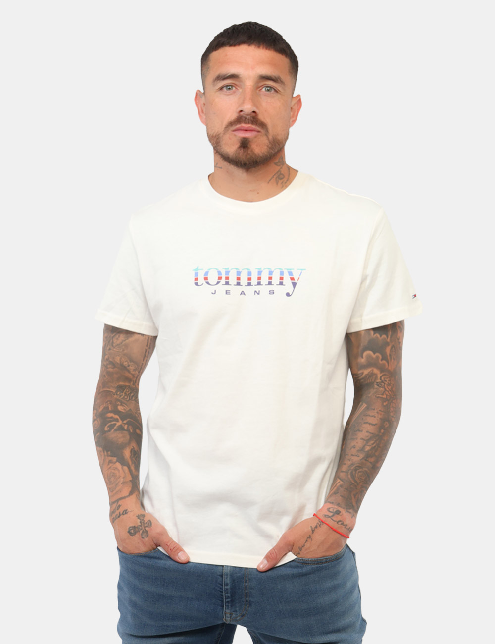 Questa t-shirt da uomo adatta in tutte le stagioni si distingue per il suo design minimal ma d’impatto, arricchito dalla stampa Tommy Jeans che aggiunge un tocco moderno e riconoscibile. Il colore bianco, luminoso e versatile, è ideale per creare outfit sempre freschi e facili da abbinare, adattandosi a qualsiasi stile.
