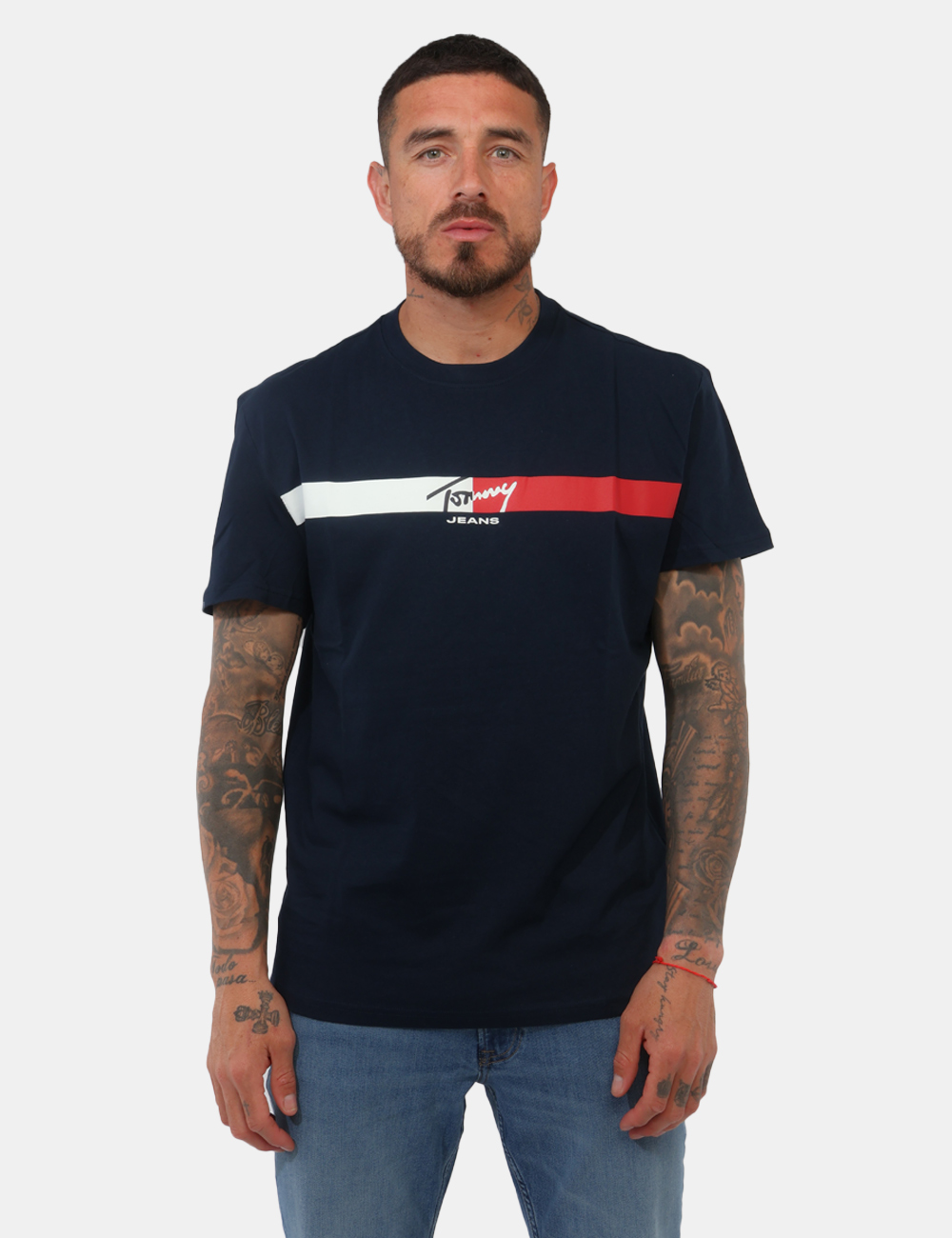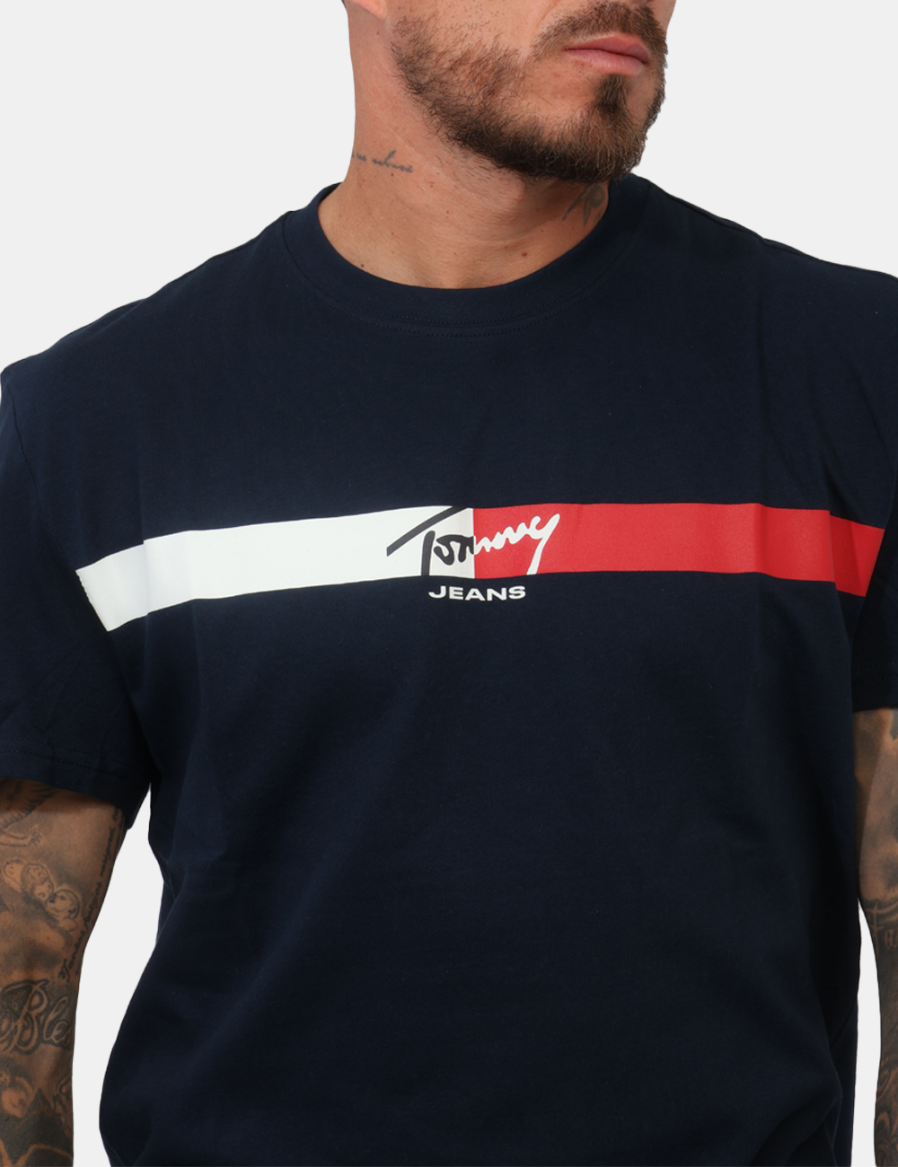 Questa T-shirt con stampa Tommy jeans si caratterizza per il suo design pulito e contemporaneo, arricchito dalla stampa del brand che aggiunge personalità senza risultare eccessiva. La vestibilità è regolare: il modello è alto 187 cm e indossa la taglia L, assicurando un fit naturale e adatto a diverse fisicità.