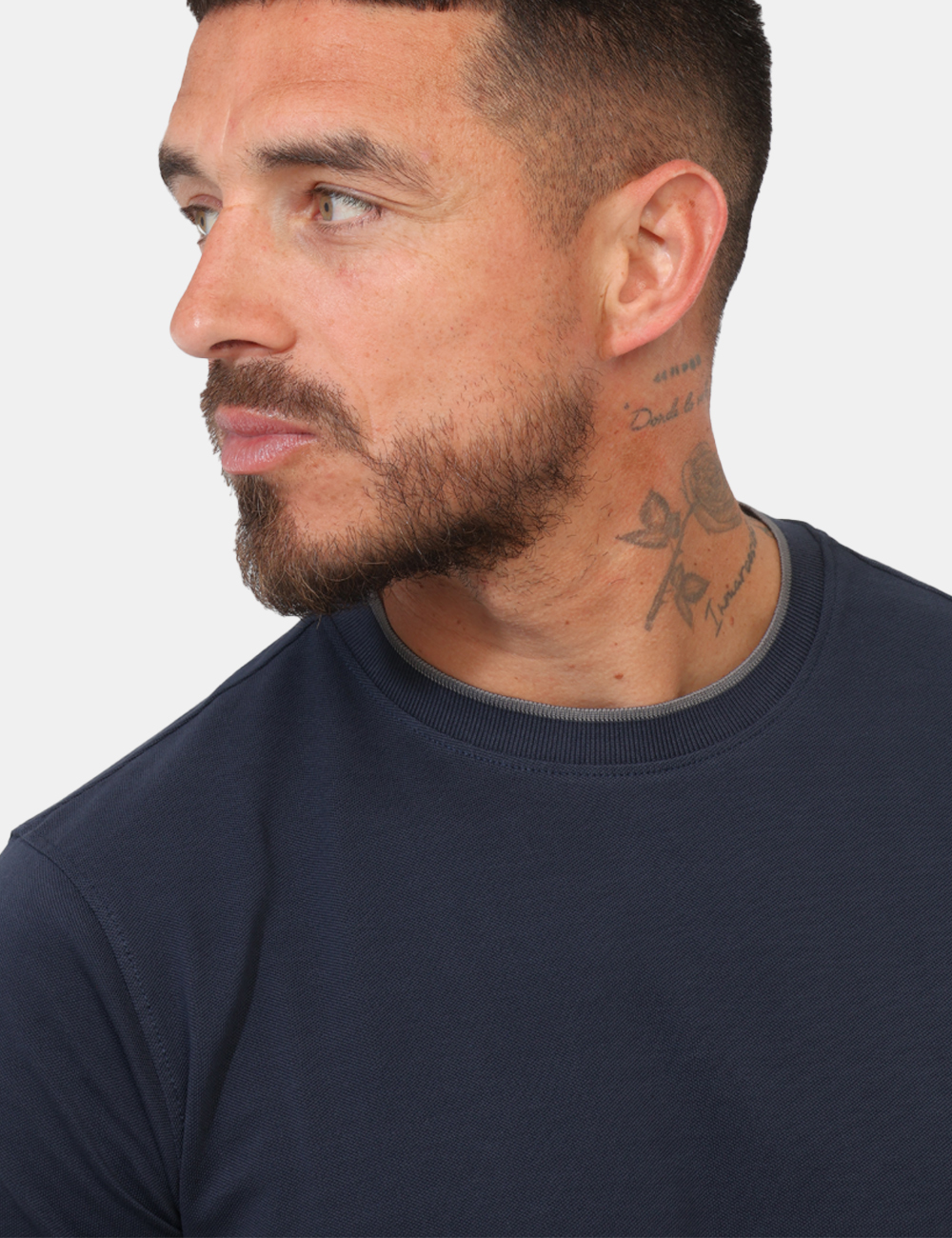 Il design è arricchito dal tessuto in piquet di cotone, che dona una texture raffinata e leggermente strutturata, rendendo il capo più ricercato rispetto a una classica t-shirt. La vestibilità è regolare: il modello è alto 187 cm e indossa una taglia L, offrendo una linea comoda ma sempre ordinata.