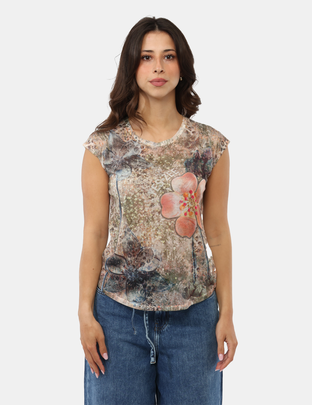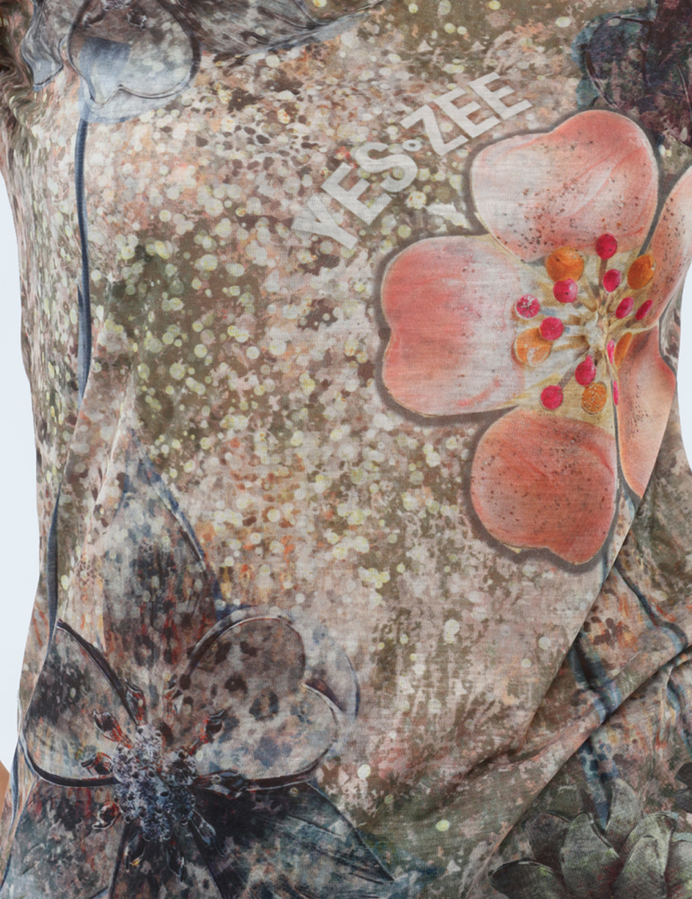 Puoi indossarla di giorno per creare outfit pratici e curati, perfetti per il tempo libero o le attività quotidiane. Abbinala a un jeans per un look casual e contemporaneo, oppure scegli un pantalone e aggiungi un blazer per un risultato più elegante e ricercato. La T-shirt con maniche corte, fantasia con fiori, logo Yes Zee al centro è ideale per chi ama distinguersi con semplicità.