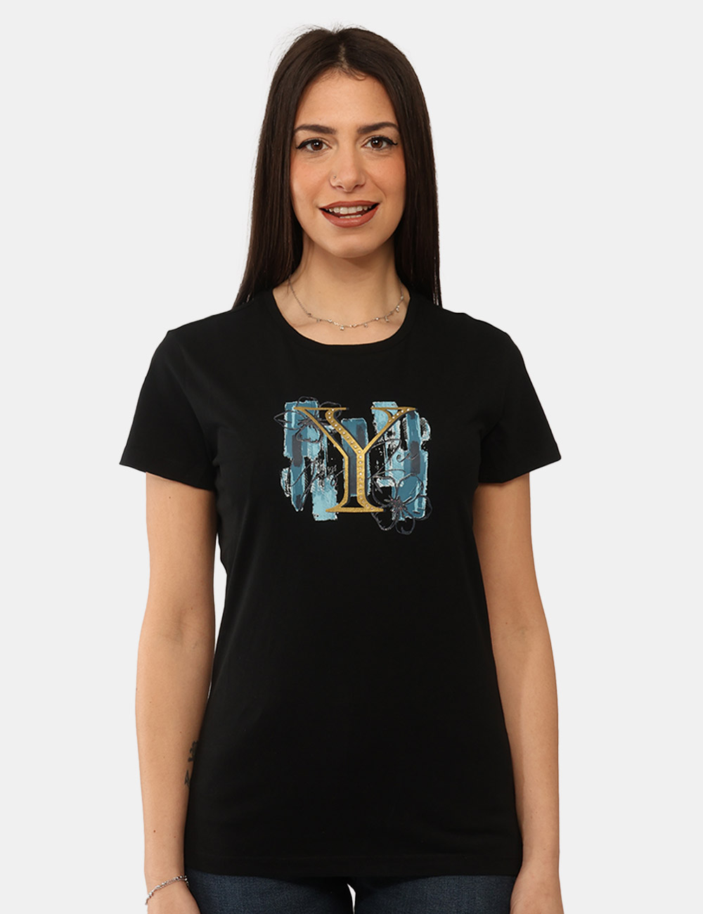 T-shirt YES ZEE Nera: essenziale con un tocco brillante