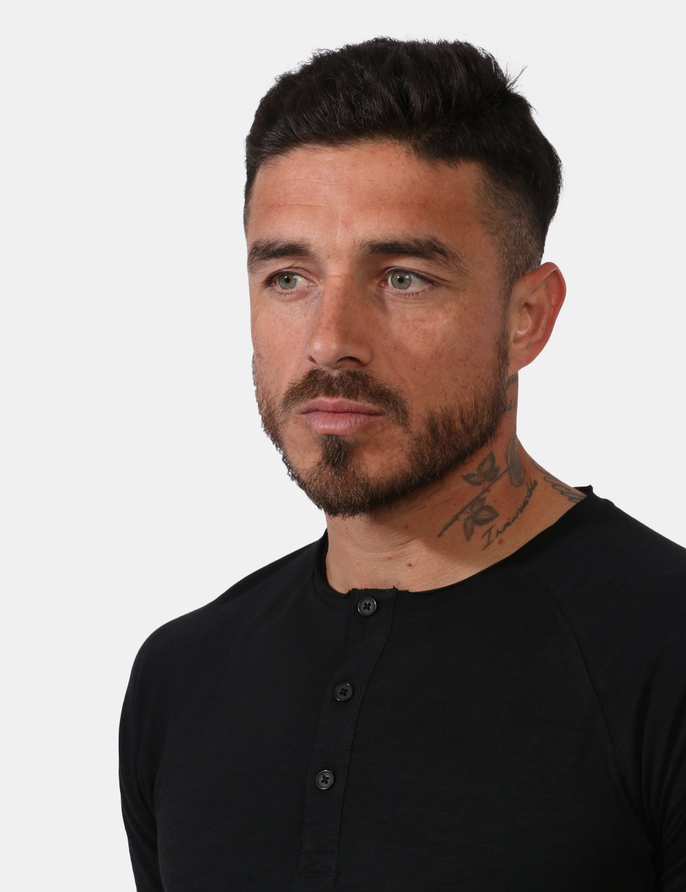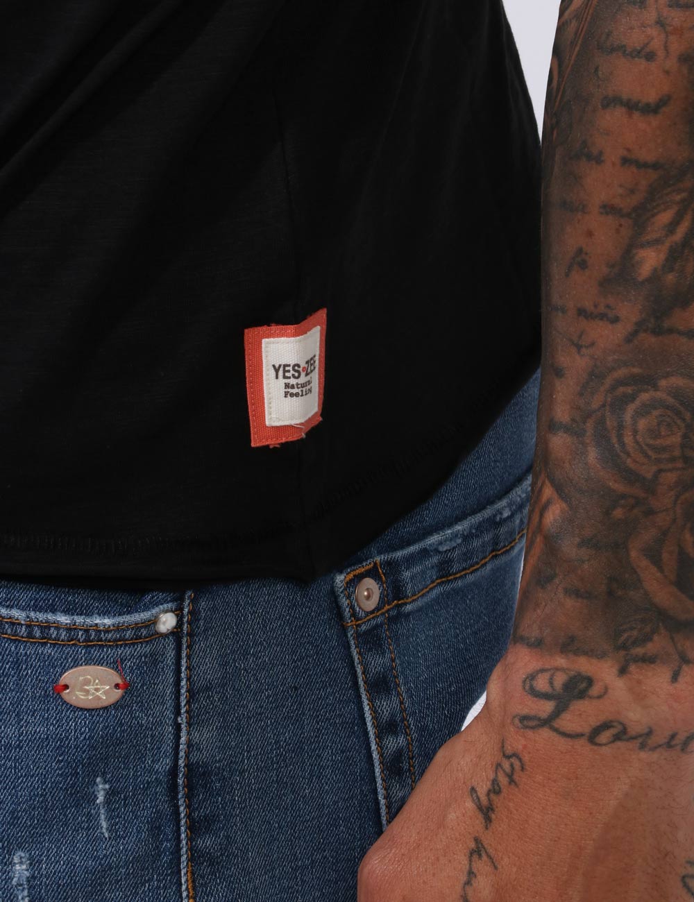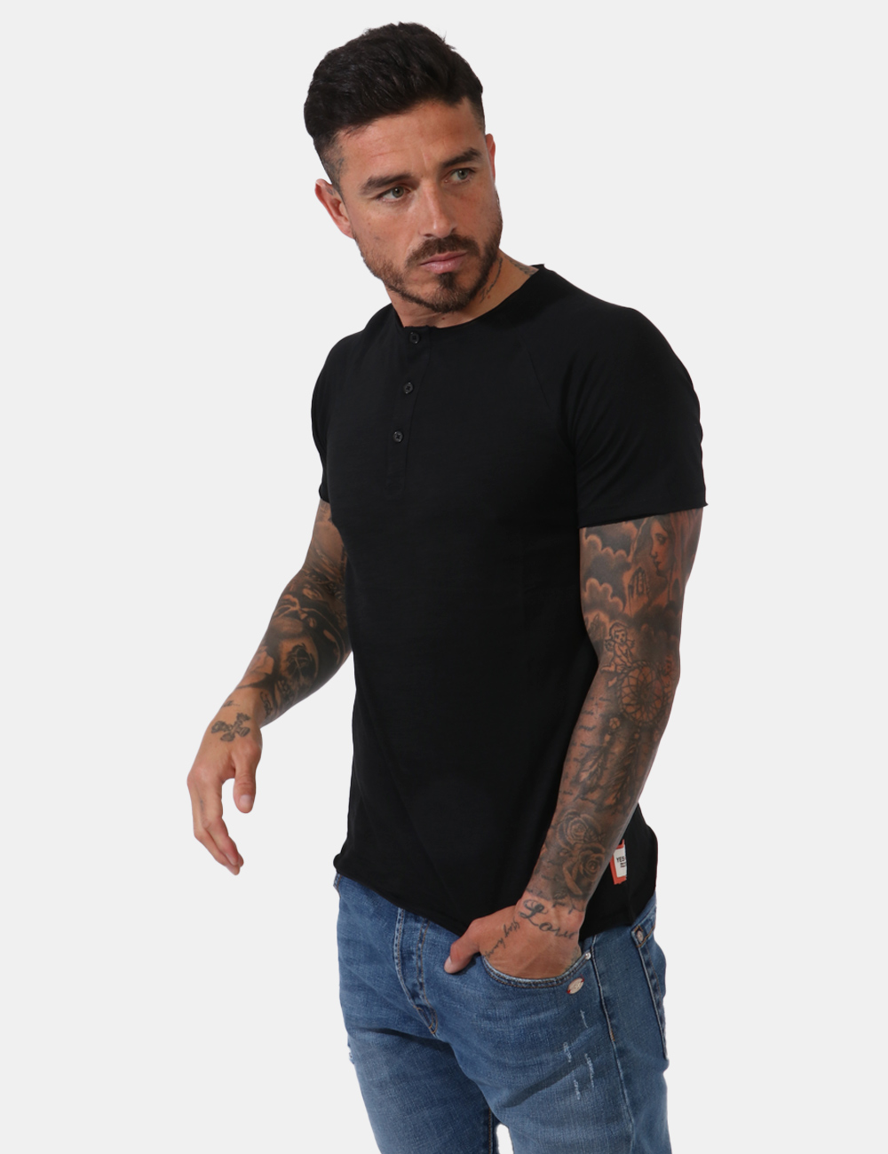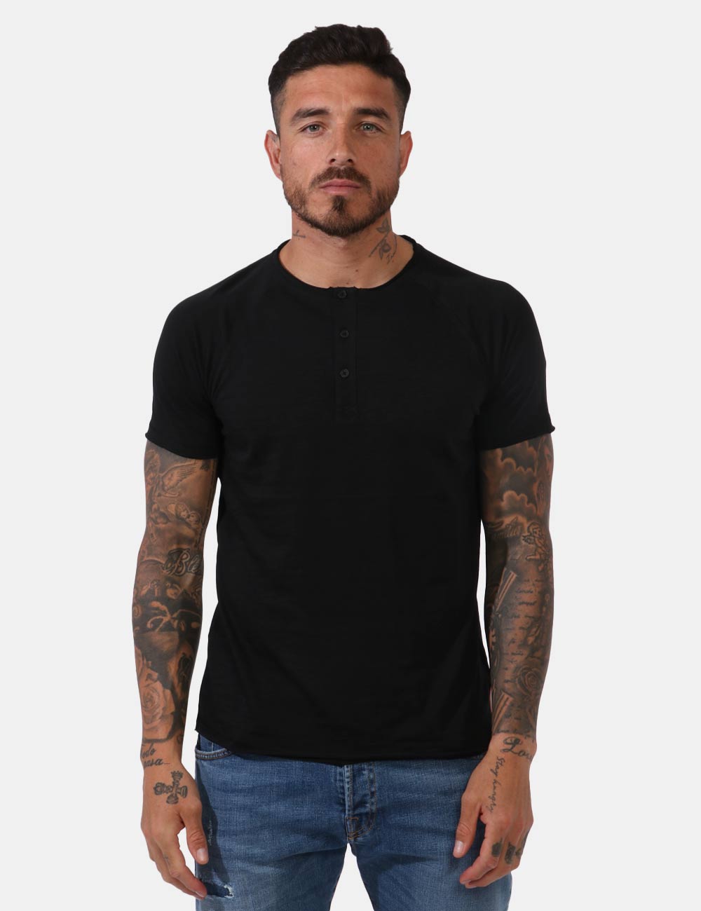 T-shirt classica in total nero. La vestibilità è morbida e pratica grazie a bottoni ad asola in tinta ad altezza girocollo. La t-shirt è adatta per occasioni casual/sportive e facilmente combinabile. Praticità e stile in un solo capo.