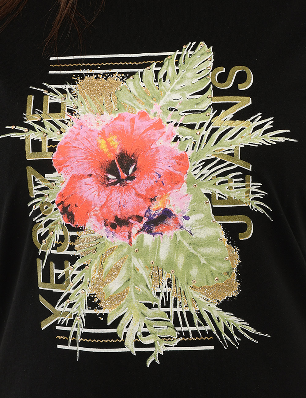 Per un look casual e versatile, puoi abbinarla a jeans e sneakers; se desideri un outfit più raffinato, indossala con pantaloni eleganti o una gonna e sandali. Il colore nero, intramontabile e facile da abbinare, rende questa t-shirt un vero alleato di stile, mentre il dettaglio glitter aggiunge un tocco distintivo.