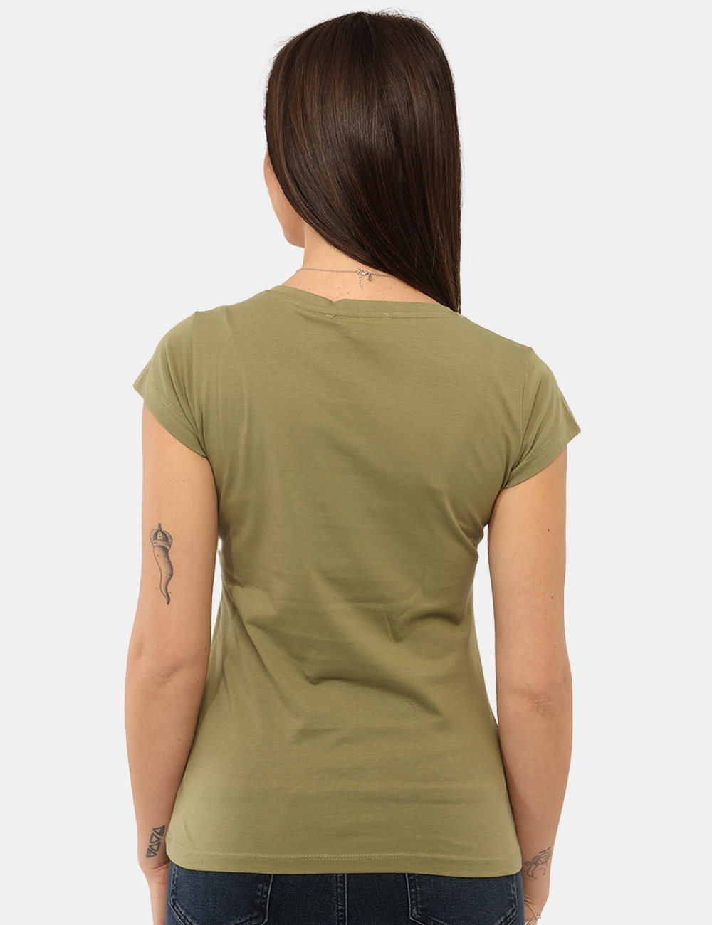 Per un look semplice e sempre attuale, puoi abbinarla a jeans e sneakers; se preferisci un outfit più curato, indossala con pantaloni chiari o una gonna e sandali. Il colore verde, naturale e versatile, si abbina facilmente e valorizza il tuo look con un tocco originale.