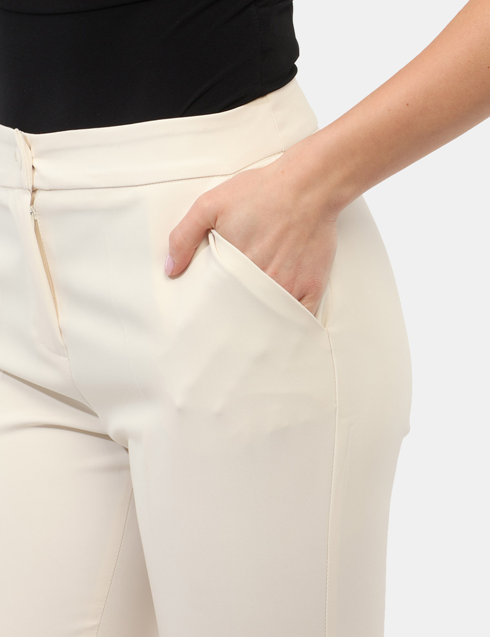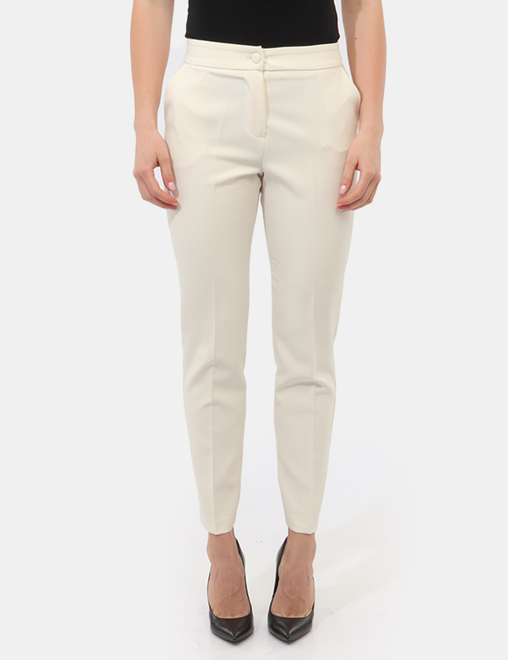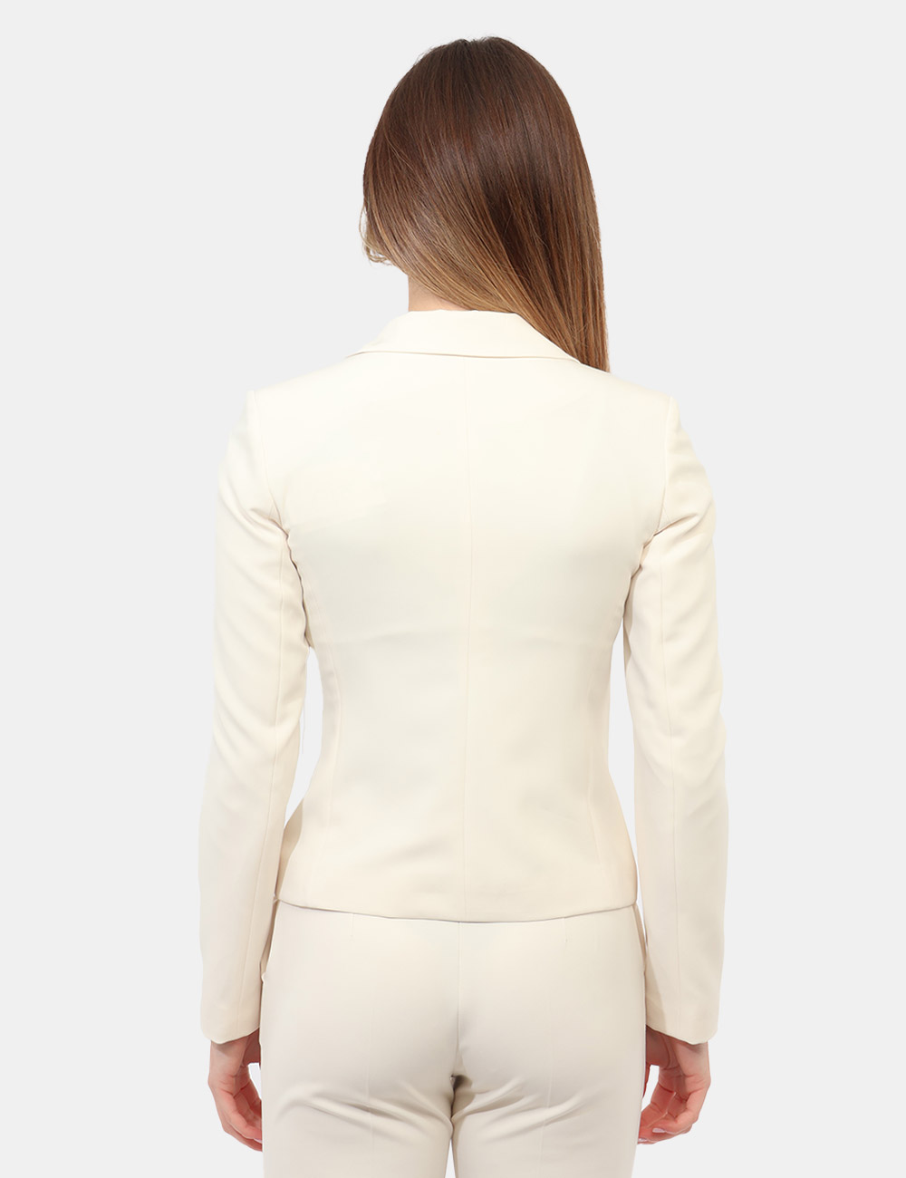 Il Tailleur Giacca Pantalone con giacca sciancrata corta con un bottone e pantalone dritto è un capo essenziale che interpreta con naturalezza eleganza e contemporaneità.