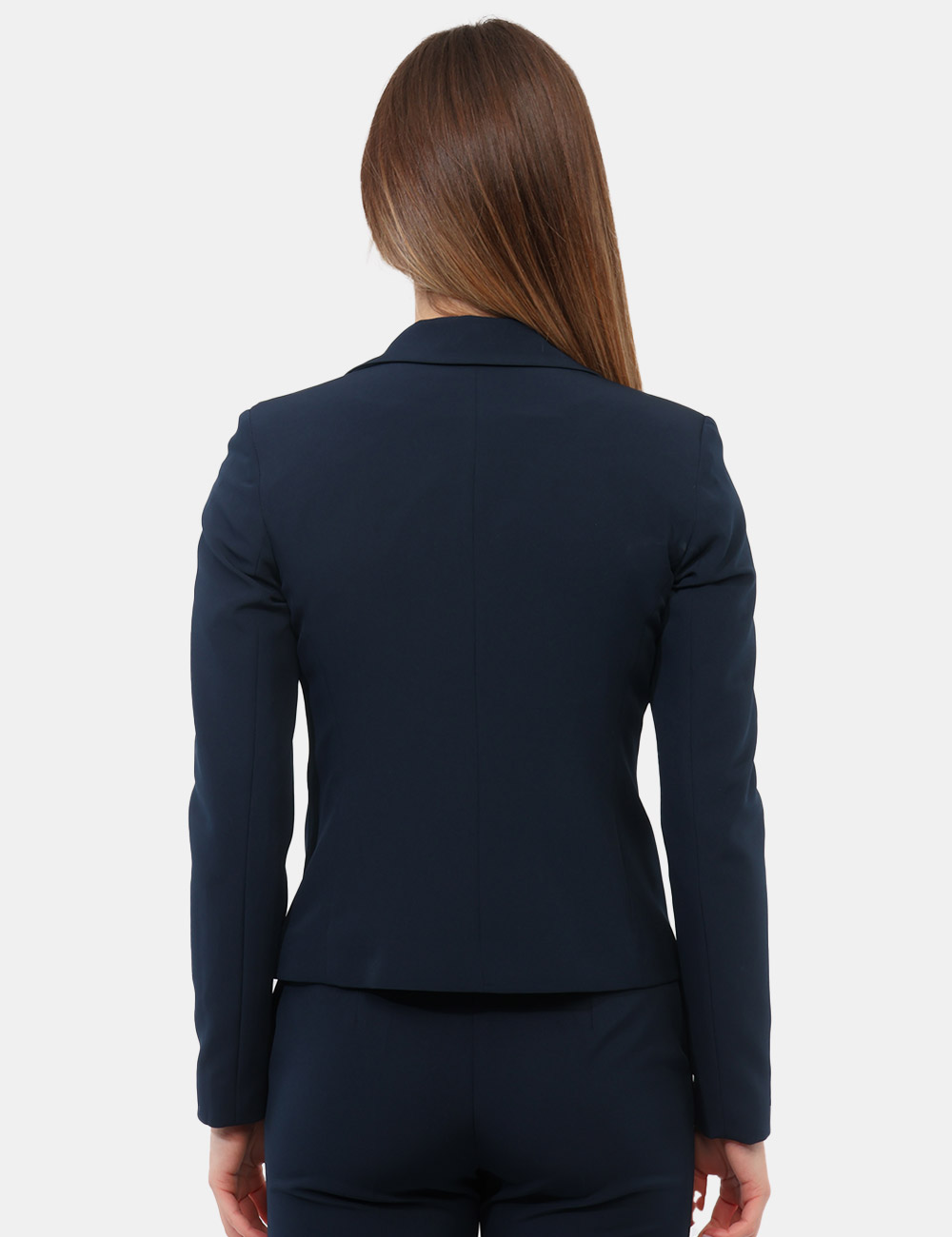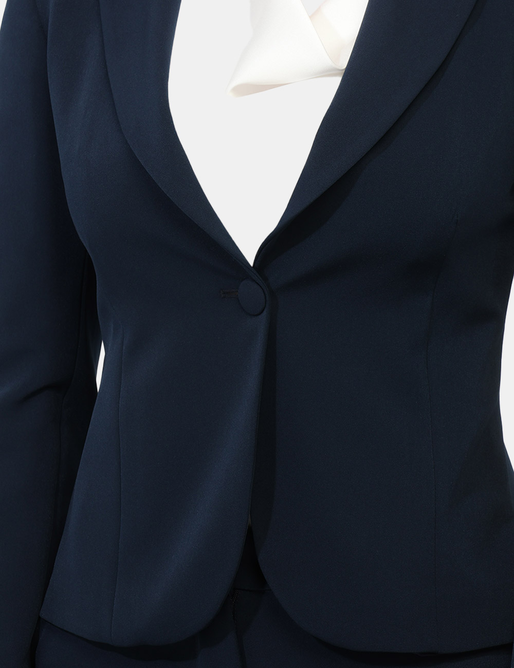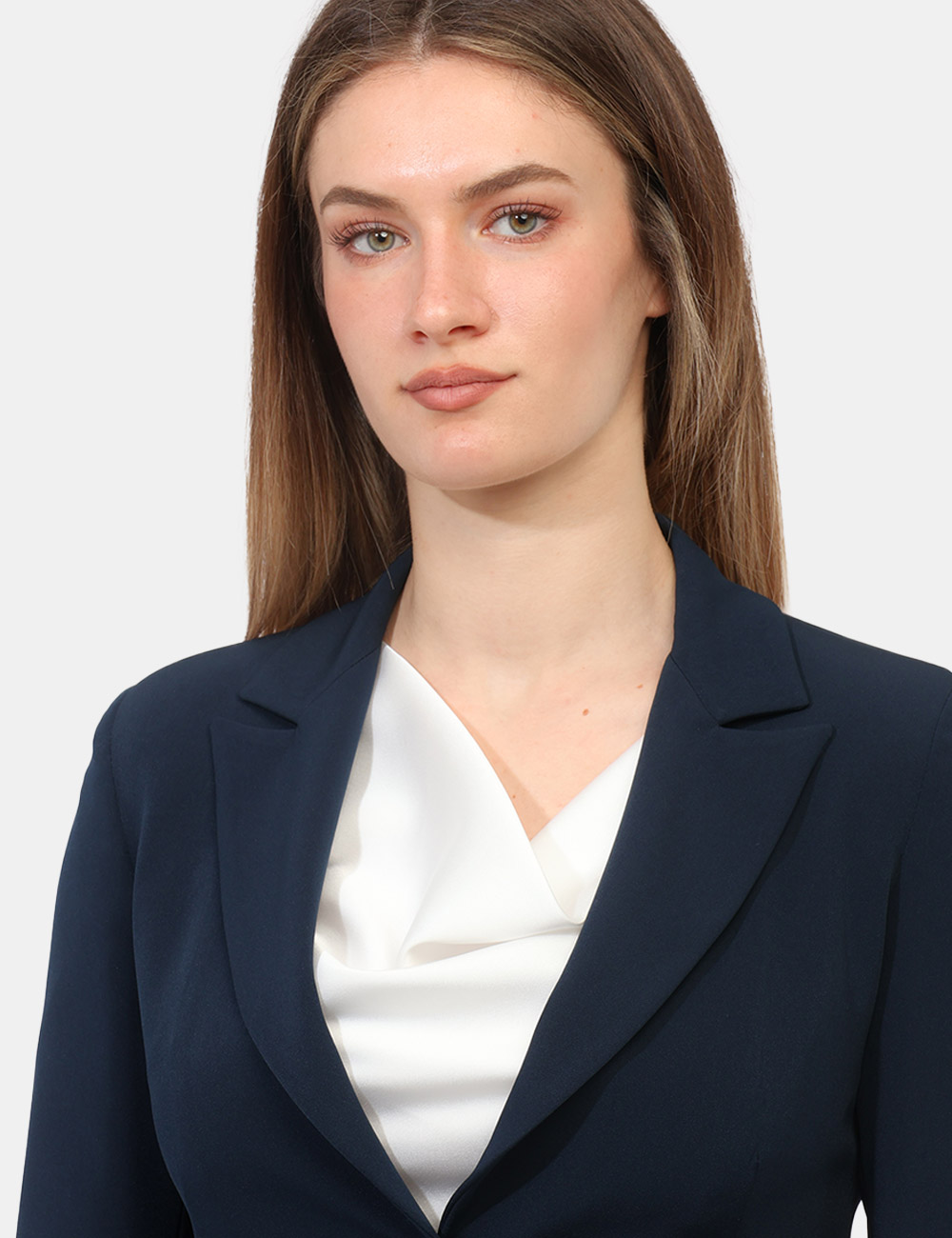 Il Tailleur Giacca Pantalone con giacca sciancrata corta con un bottone e pantalone dritto è una scelta senza tempo, capace di adattarsi al tuo stile con naturalezza.