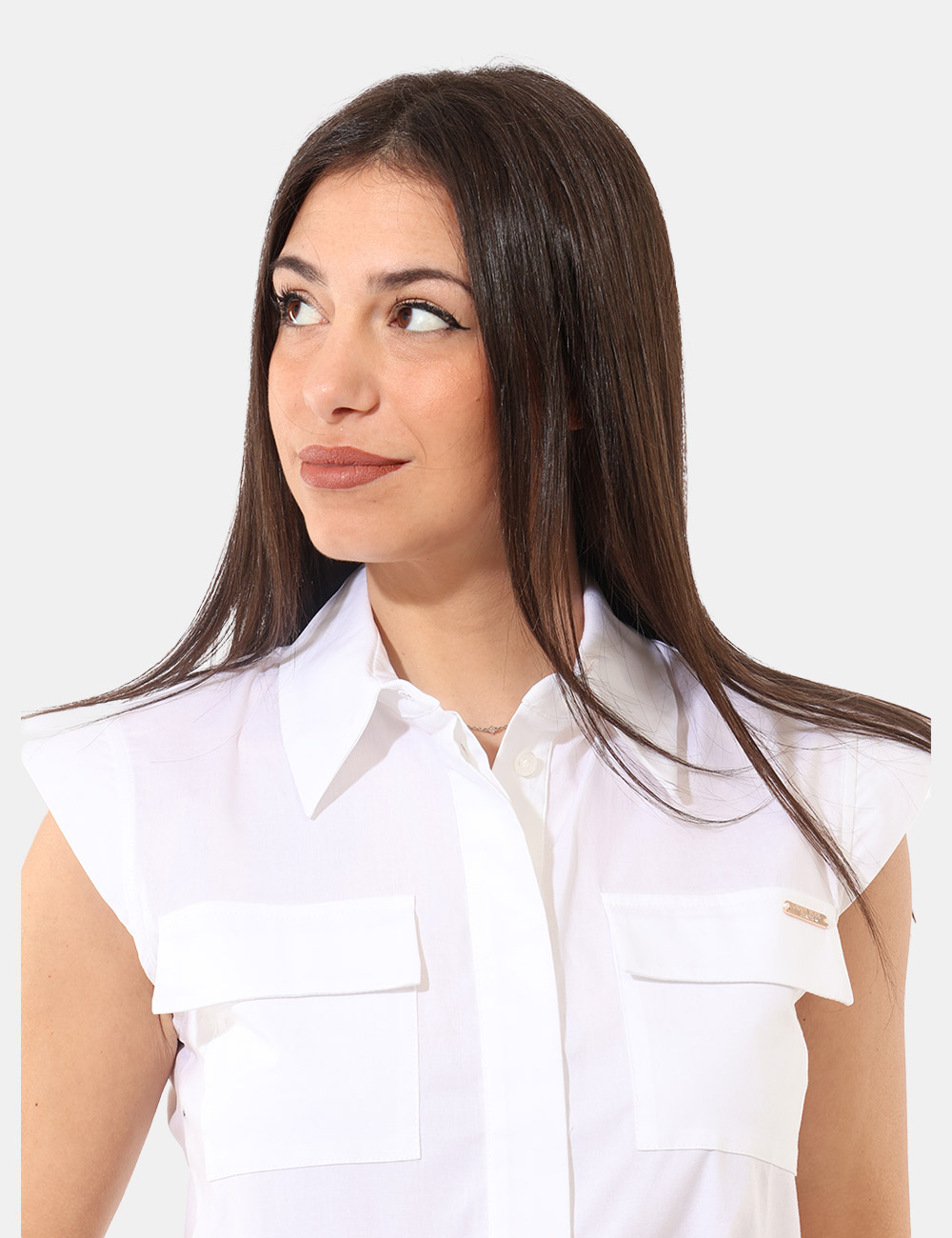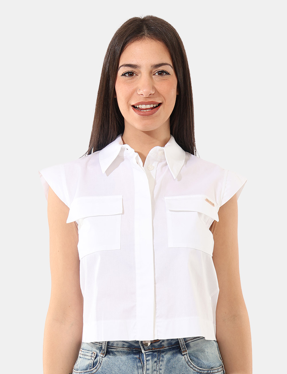 Questo top da donna adatto alla stagione primavera estate è realizzato in 97% cotone e 3% elastane, una composizione che garantisce morbidezza, traspirabilità e una leggera elasticità per accompagnare i movimenti con comfort. Il design si distingue per il giromanica, le tasche e il colletto peter pan, dettaglio romantico che aggiunge un tocco delicato e distintivo al modello. La vestibilità è regolare e valorizza la silhouette con naturalezza: la modella è alta 165 cm e indossa la taglia 42. Pezzo unico di campionario.