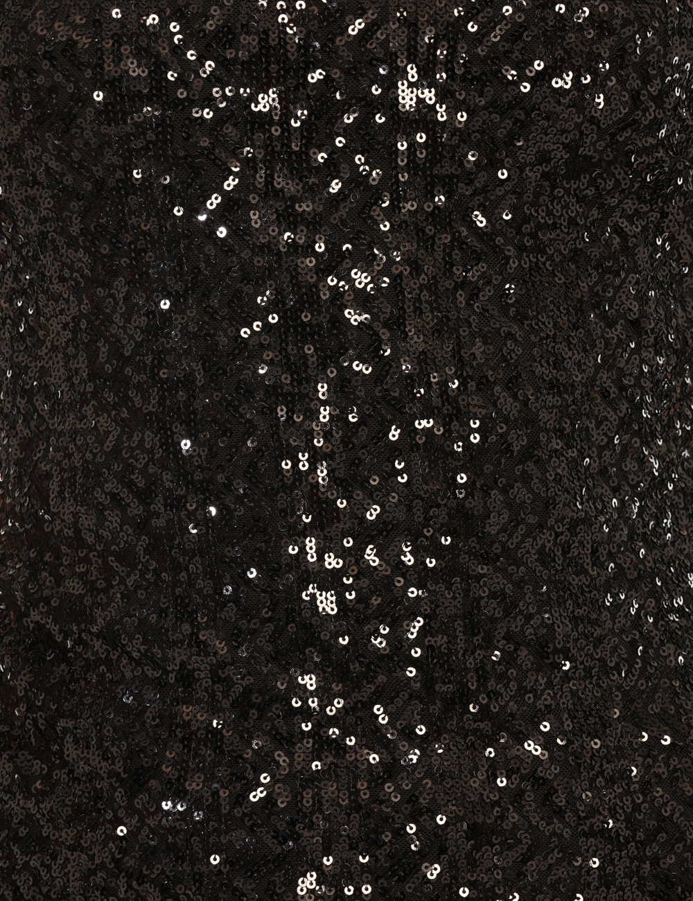 Top monospalla, su base nera con paillettes in tinta. La vestibilità è morbida e regolare. Il top è adatto per occasioni casual e raffinate, facilmente combinabile. Questo capo merita una serata importante.