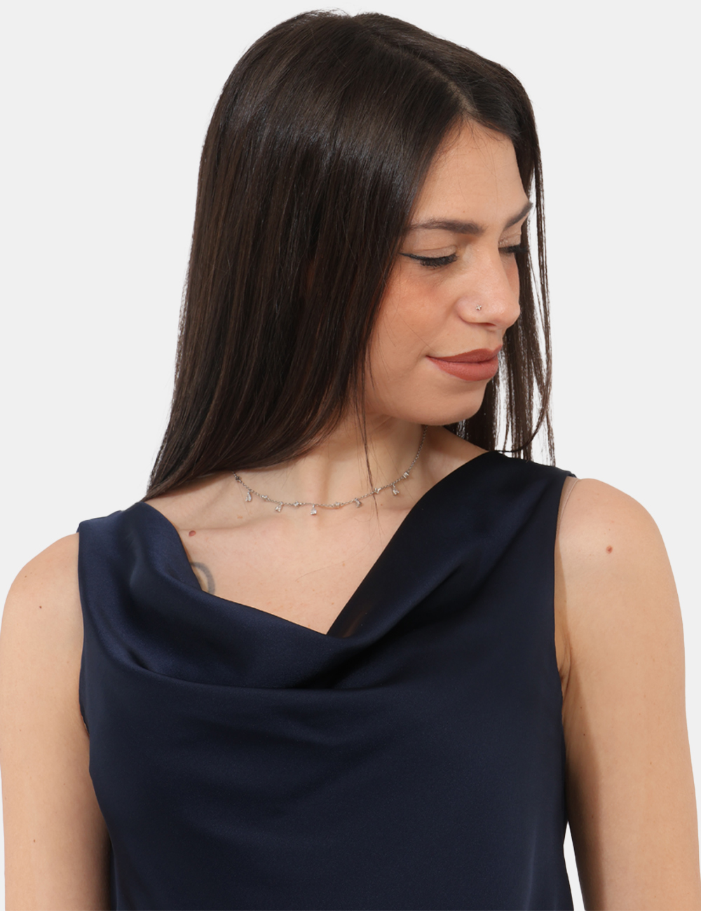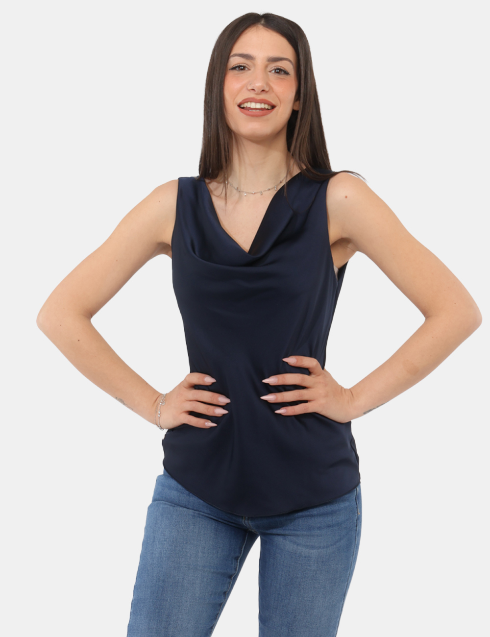 Il punto di forza di questo capo è lo scollo morbido, che dona eleganza e movimento, mentre il tessuto lucido aggiunge un tocco raffinato e contemporaneo. Questo top con scollo morbido, tessuto lucido è perfetto per chi cerca un capo essenziale ma con personalità.