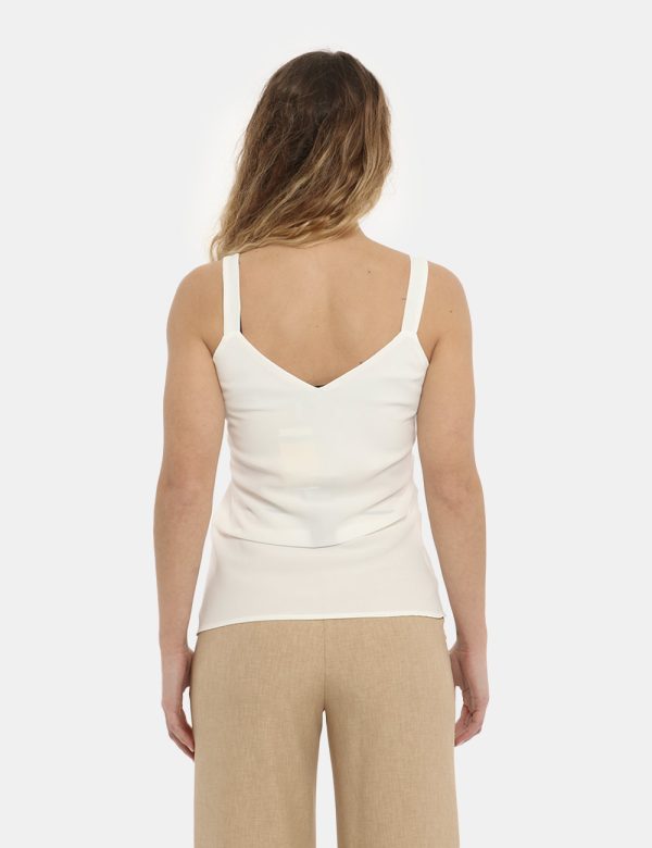 Top modello canotta in total white con spalline strette e scollo a V. La vestibilità è morbida. Il top è adatto per occasioni casual/raffinate e facilmente combinabile per outfit di giorno e di sera. Tu più questo capo: l’abbinamento perfetto.