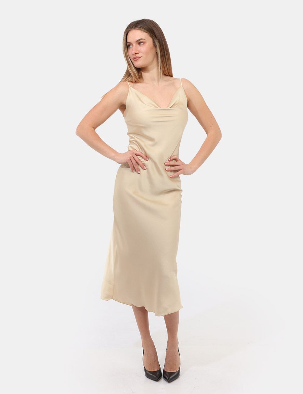 Questo vestito da donna adatto alla primavera estate si distingue per il suo design essenziale e raffinato: il raso lungo dona luminosità e movimento, mentre le spalline sottili aggiungono un tocco di leggerezza e femminilità. Il colore beige, delicato e sofisticato, rende il capo estremamente versatile, perfetto per creare look eleganti e senza tempo.