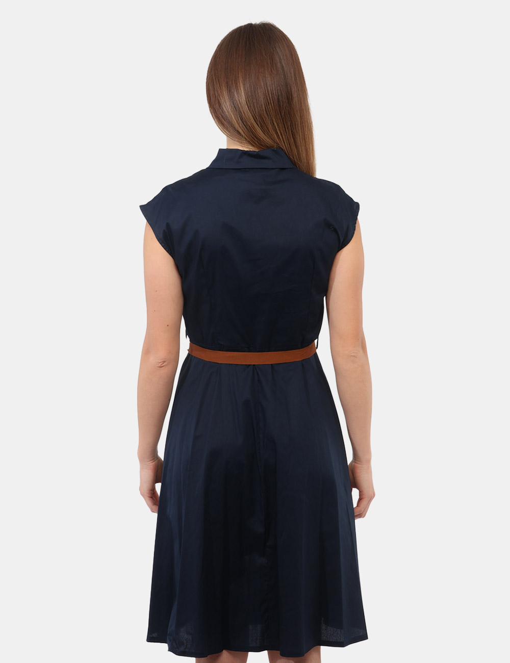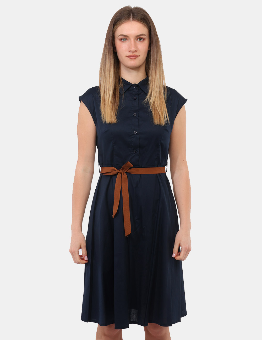 Questo vestito da donna adatto alla stagione primavera estate si distingue per il suo design raffinato e versatile: il collo a camicia dona un tocco elegante e strutturato, mentre il nastro in vita valorizza la silhouette, permettendoti di regolare la vestibilità e creare un look femminile e armonioso. Il colore blu aggiunge profondità e carattere, rendendolo perfetto sia per il giorno sia per occasioni più curate.