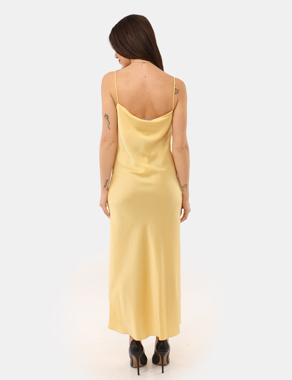 Il Vestito RUE DE CLERIE Giallo è la scelta perfetta per chi desidera distinguersi con eleganza e luminosità. Realizzato in raso, con una linea lunga e spalline sottili, questo abito avvolge la silhouette con delicatezza, creando un effetto fluido e raffinato. La composizione in 95% poliestere e 5% elastano garantisce comfort e una vestibilità regolare, accompagnando i movimenti con naturalezza e leggerezza.