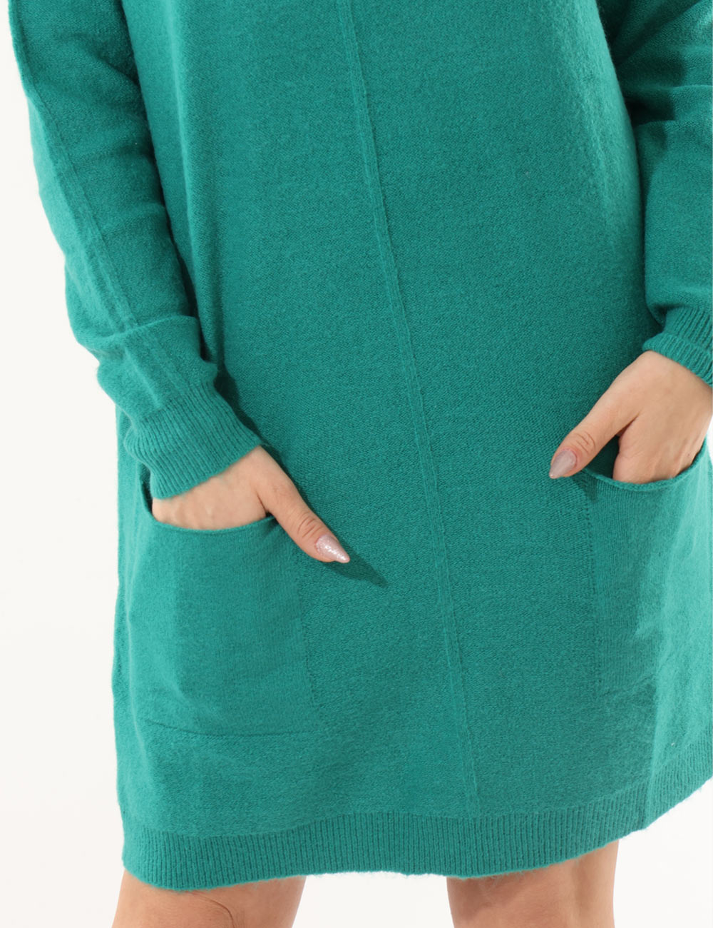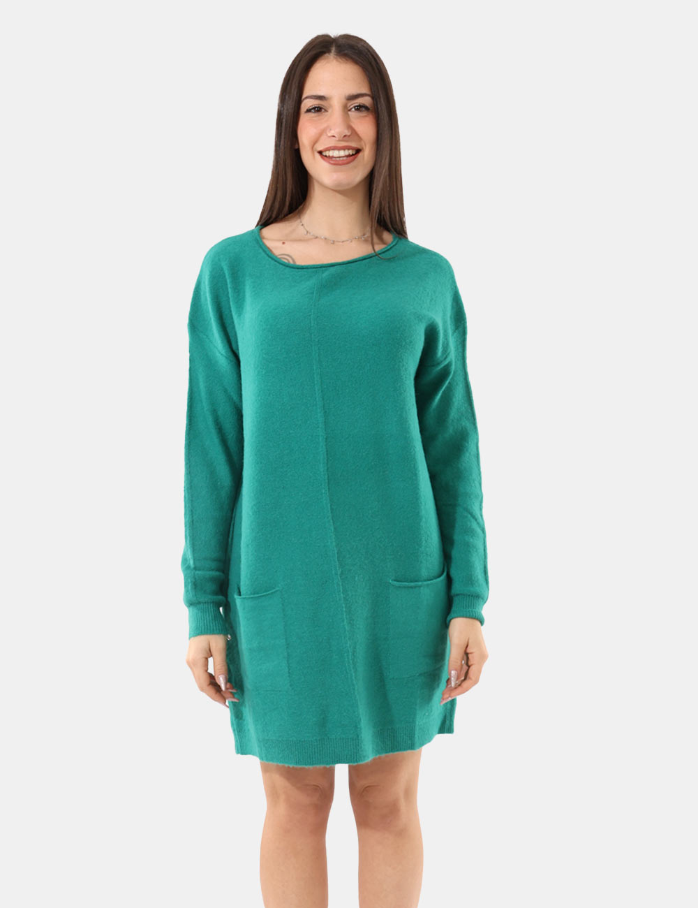 Vestito in maglina, misto lana, maniche lunghe, tasche a toppa, girocollo classico ampio e total verde. La vestibilità è morbida e regolare. Il capo è adatto per occasioni casual e facilmente combinabile con numerosi accessori. Dona un tocco di stile ai tuoi outfit invernali.