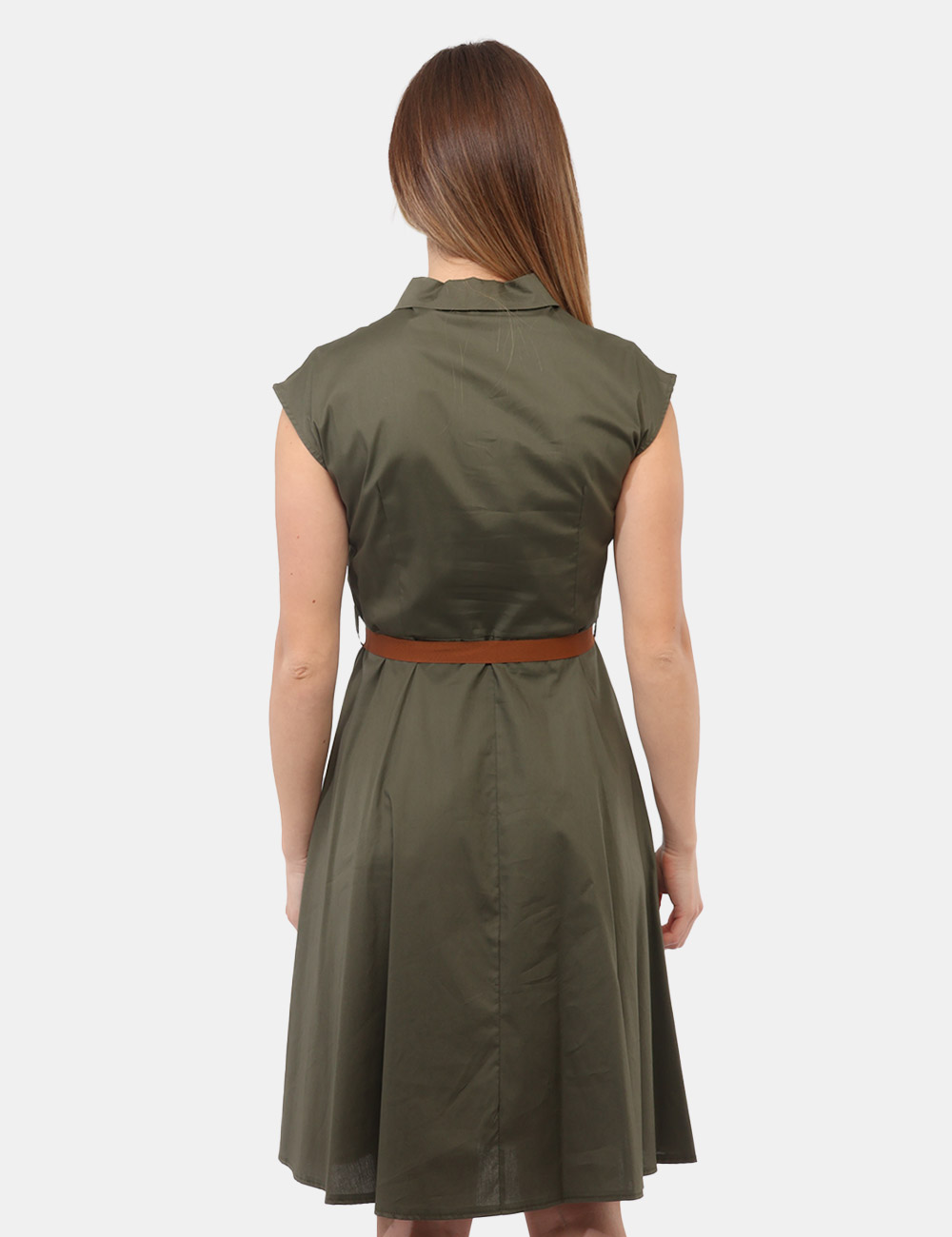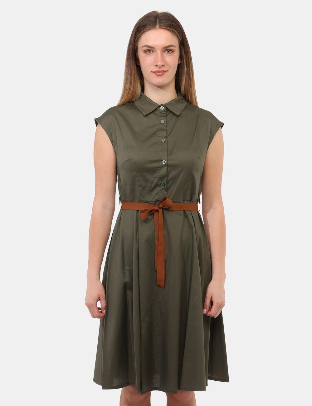 Questo vestito da donna adatto alla stagione primavera estate si distingue per il suo design elegante e versatile: il collo a camicia dona struttura e raffinatezza, mentre il nastro in vita permette di definire la figura con delicatezza, creando un look femminile e armonioso. Il colore verde aggiunge freschezza e personalità, rendendo questo abito perfetto per outfit equilibrati e moderni.