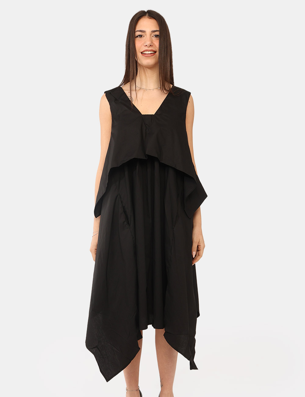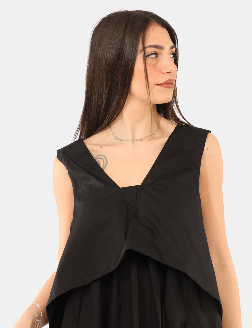 Il Vestito VIA DELLE ROSE Nero è il capo perfetto per chi desidera uno stile moderno, femminile e versatile durante la stagione più calda. Questo vestito da donna primavera estate unisce comfort e design contemporaneo in un modello pensato per accompagnarti con naturalezza nelle giornate più dinamiche. Il colore nero, intramontabile ed elegante, rende il capo facile da abbinare e ideale per creare look casual ma sempre curati. Realizzato in 100% cotone, garantisce leggerezza, traspirabilità e una piacevole sensazione sulla pelle, caratteristiche ideali per affrontare le giornate primaverili ed estive con il massimo comfort. Il design è valorizzato da dettagli originali che rendono il capo unico: si tratta infatti di un vestito con spalla larga , assimmetrico e con tasche, elementi che aggiungono carattere al modello e creano un look contemporaneo e dinamico. La vestibilità regolare lo rende facile da indossare e perfetto per diverse occasioni quotidiane. Il Vestito VIA DELLE ROSE Nero è ideale da indossare nel tempo libero, durante una passeggiata in città, per una giornata estiva o per un’uscita informale quando desideri un outfit pratico ma stiloso. Puoi abbinarlo facilmente a sandali per un look fresco e femminile, oppure completarlo con sneakers per uno stile più casual e dinamico. La modella è alta 165 cm e veste la taglia S; la vestibilità del capo è regolare. Su SecondaStrada.com trovi solo prodotti originali e accuratamente selezionati. Codice articolo: VS24 15409 SB.