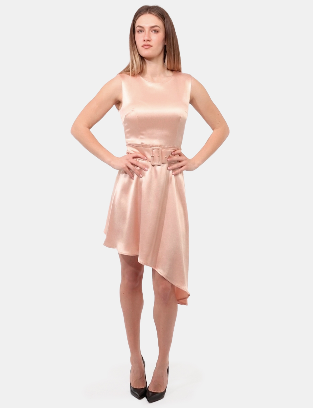 Questo vestito con fondo non regolare e spalla imbottita , cintura è perfetto da indossare nel tempo libero, per una passeggiata in città o un aperitivo all’aperto, ma si presta anche a occasioni più curate con i giusti accessori.
