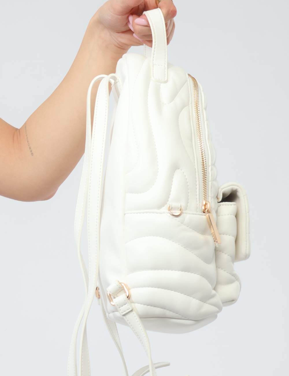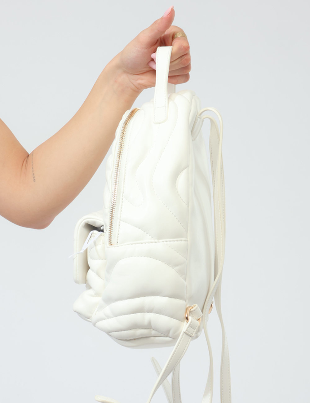 Realizzato in poliuretano, questo modello si distingue per la sua lavorazione trapuntata con zip ed inserti dorati, che donano luminosità e un tocco sofisticato al look. Le dimensioni (base 23 cm, altezza 28 cm, profondità 10 cm) lo rendono capiente ma compatto, perfetto per organizzare tutto l’essenziale durante la giornata. È uno zaino con trapuntato con zip ed inserti dorati pensato per offrire comfort e stile in ogni occasione. L’articolo può presentare piccoli difetti nella confezione o nel tessuto, senza comprometterne la funzionalità.